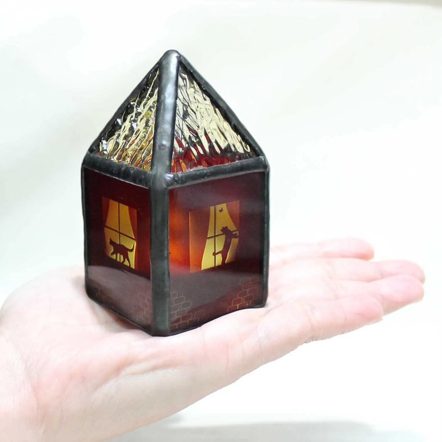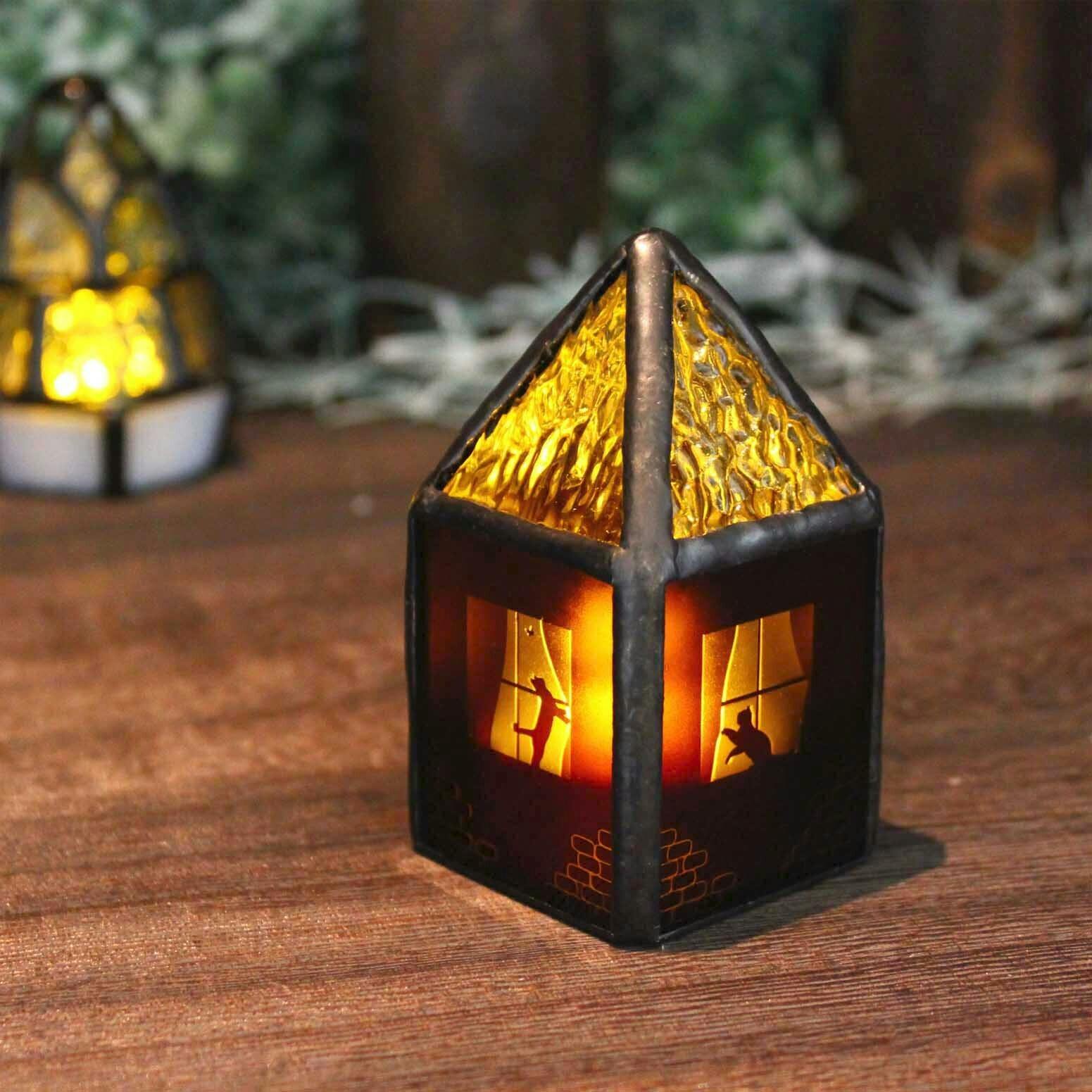 ■ステンドグラス・ミニランプ【ネコがいる小さな赤いお家】5,900円(送料・消費税込)