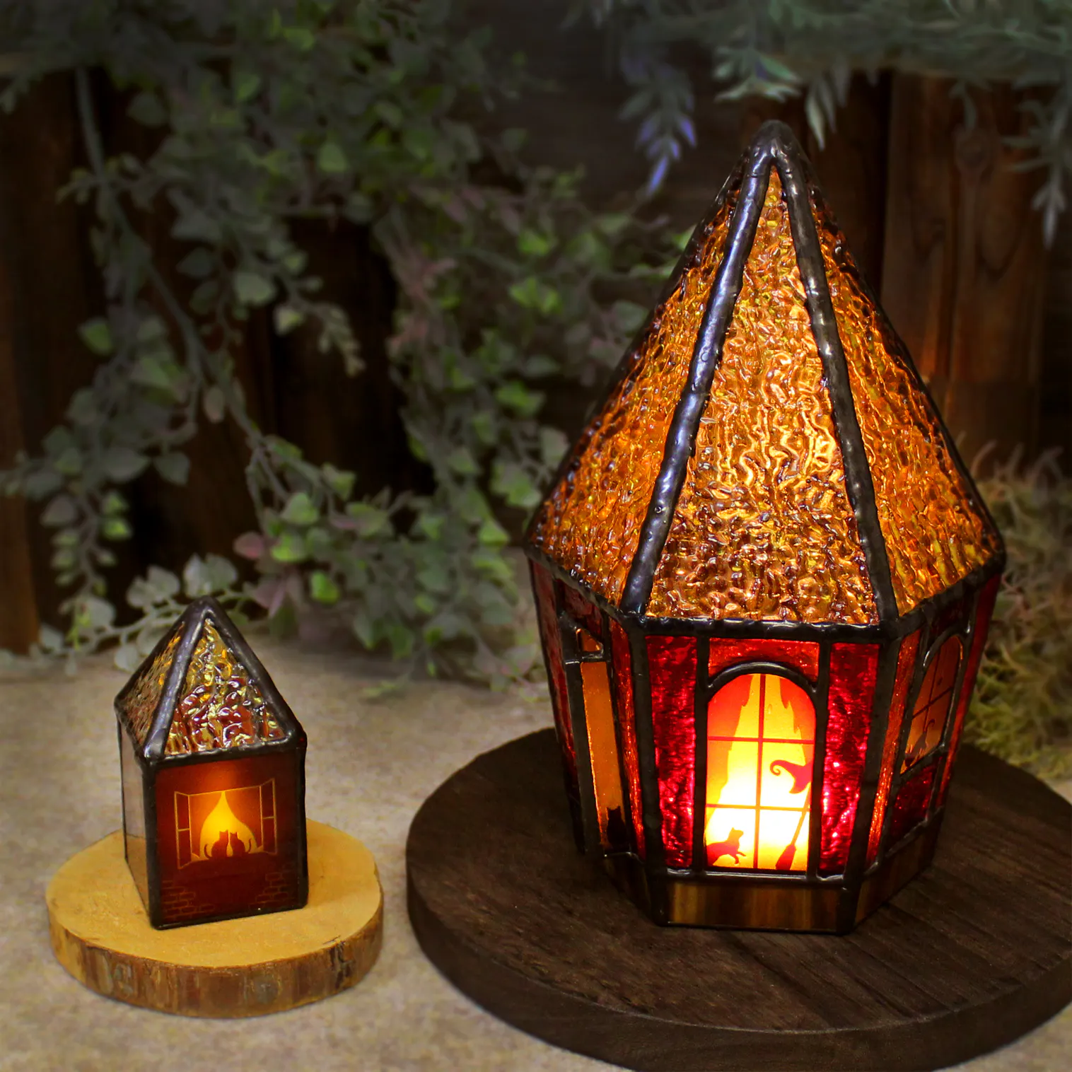 ■ステンドグラス・ランプ【ネコがいる魔女のお家】50,000円(送料・消費税込)
