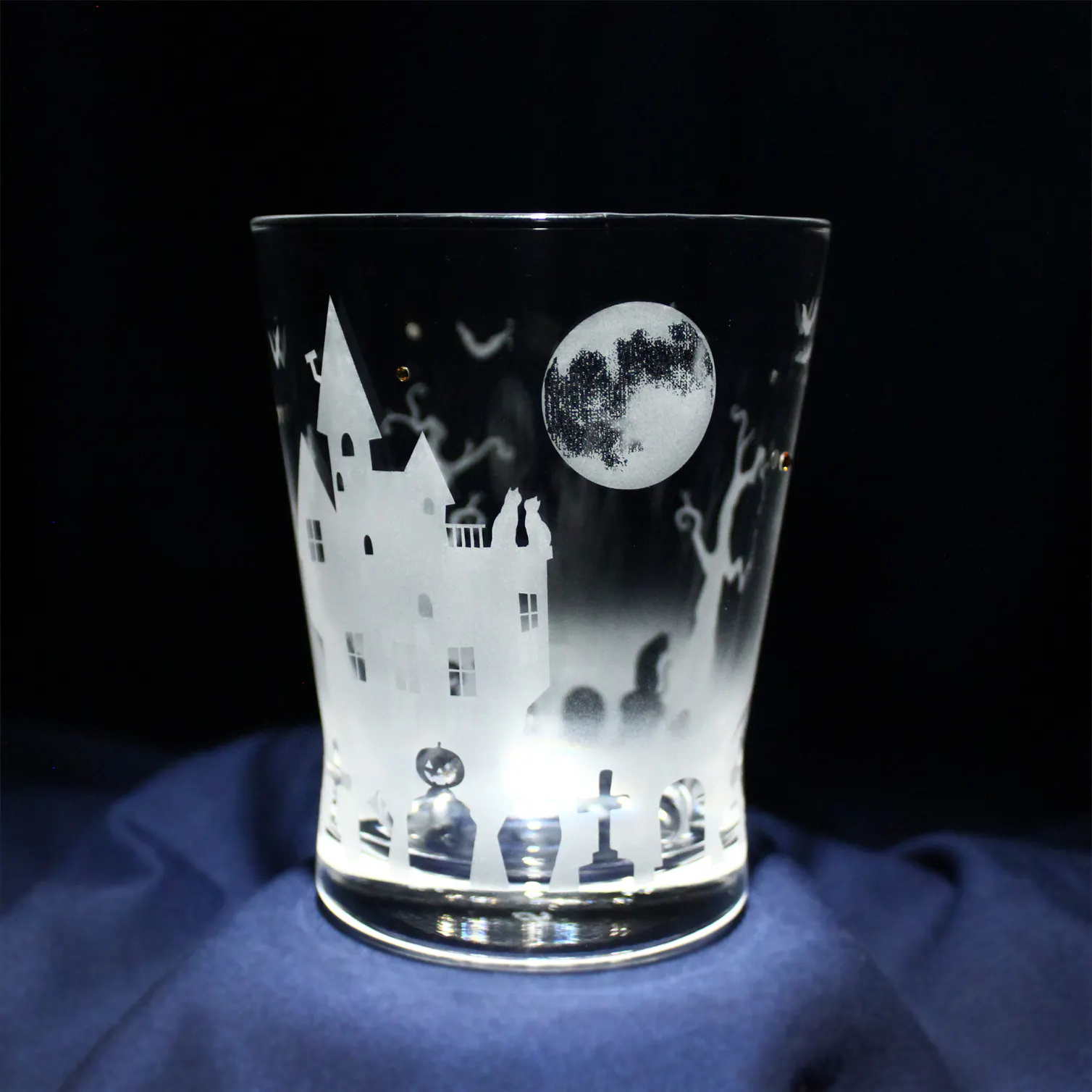 ハロウィングラス用のデザインは、グラスの下の方にお墓が一周まわっています。