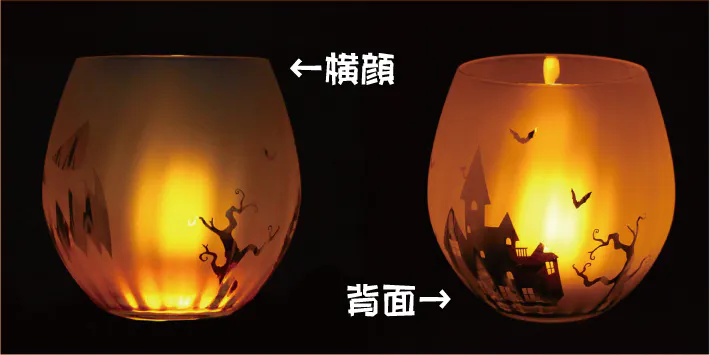 この画像は、LEDライトではなく ティーライトキャンドルを灯して、暗い場所で撮影しました。