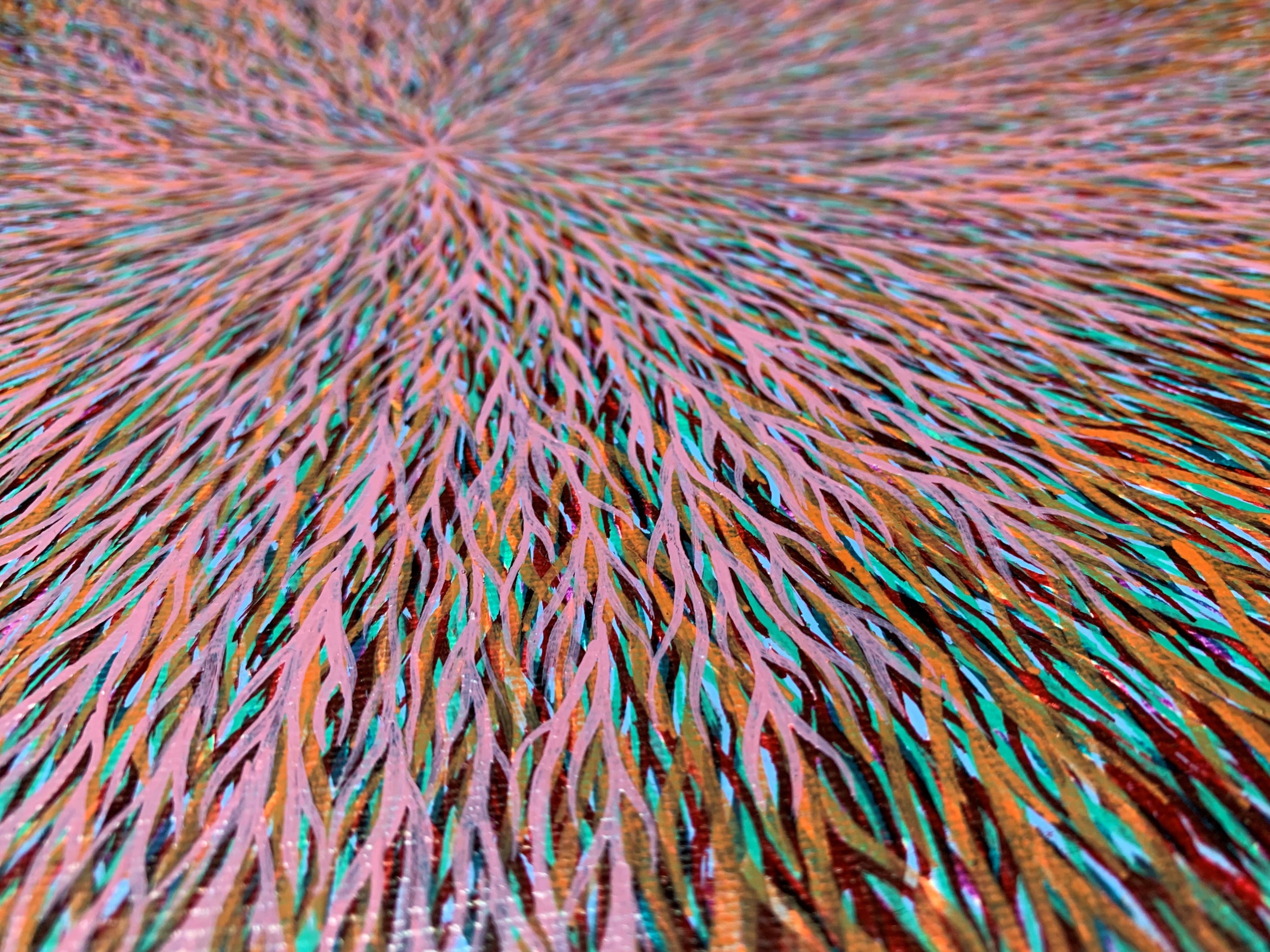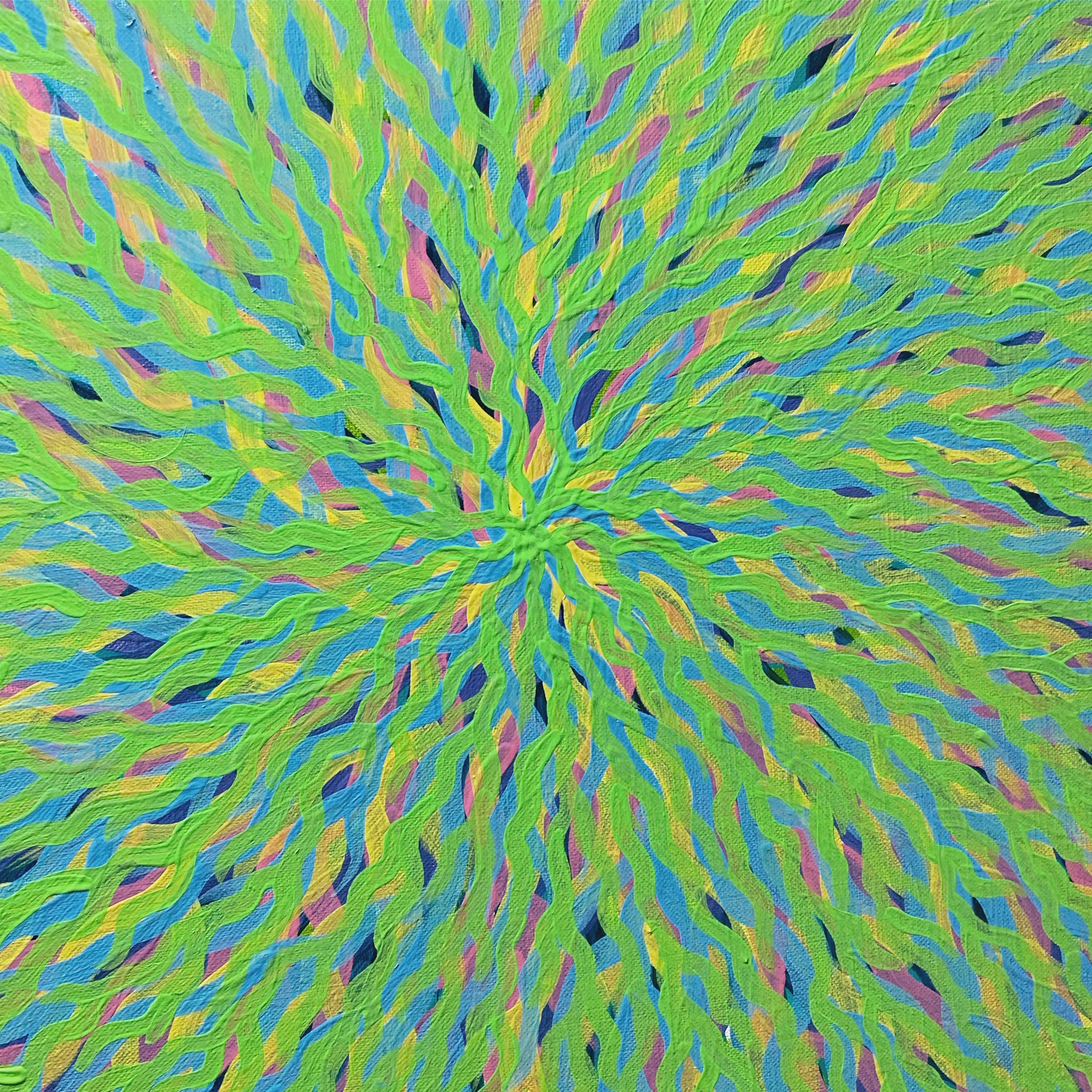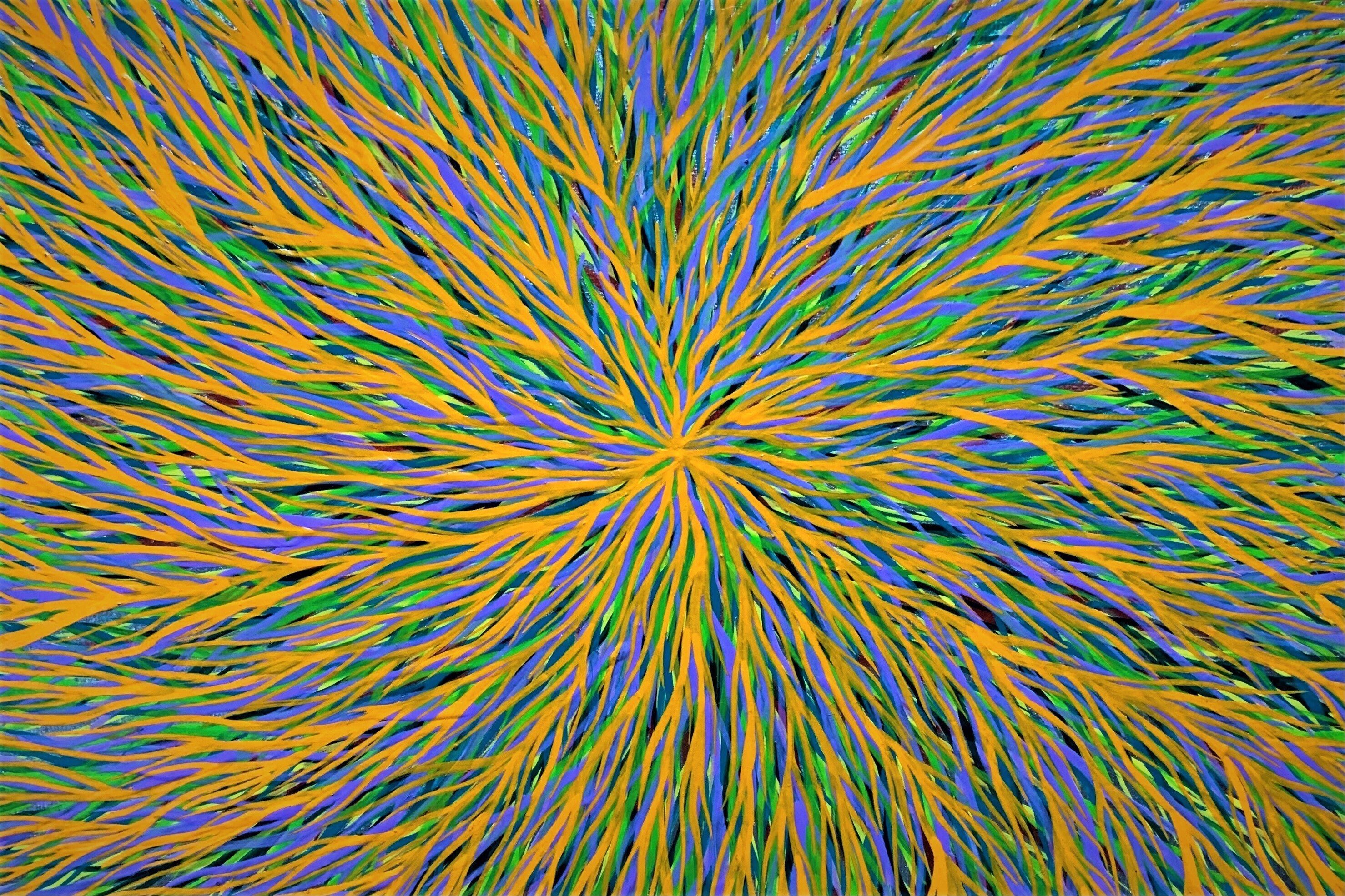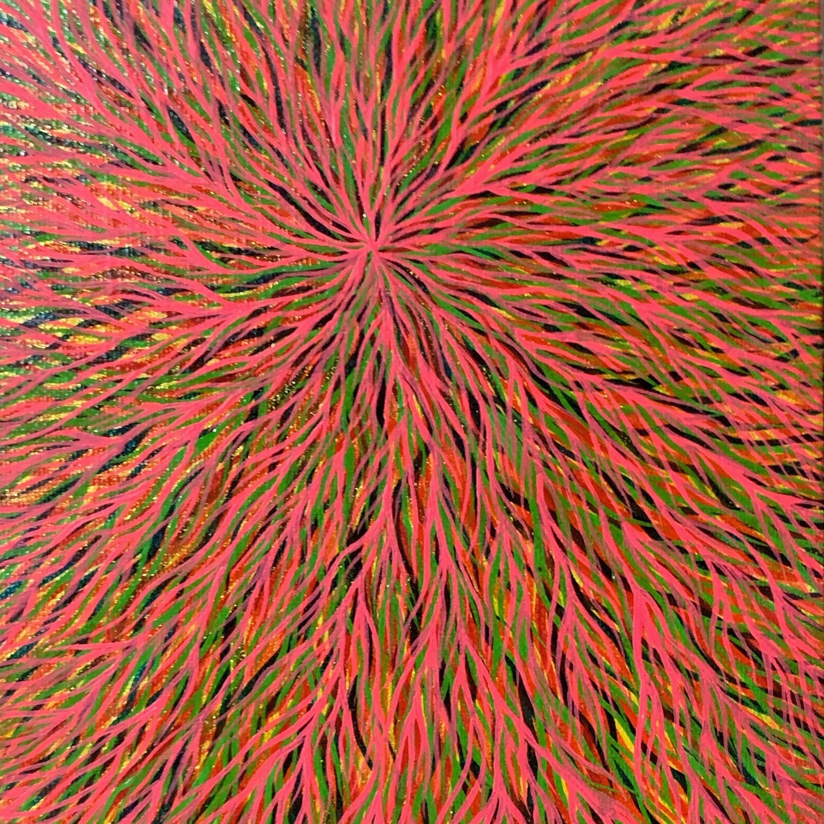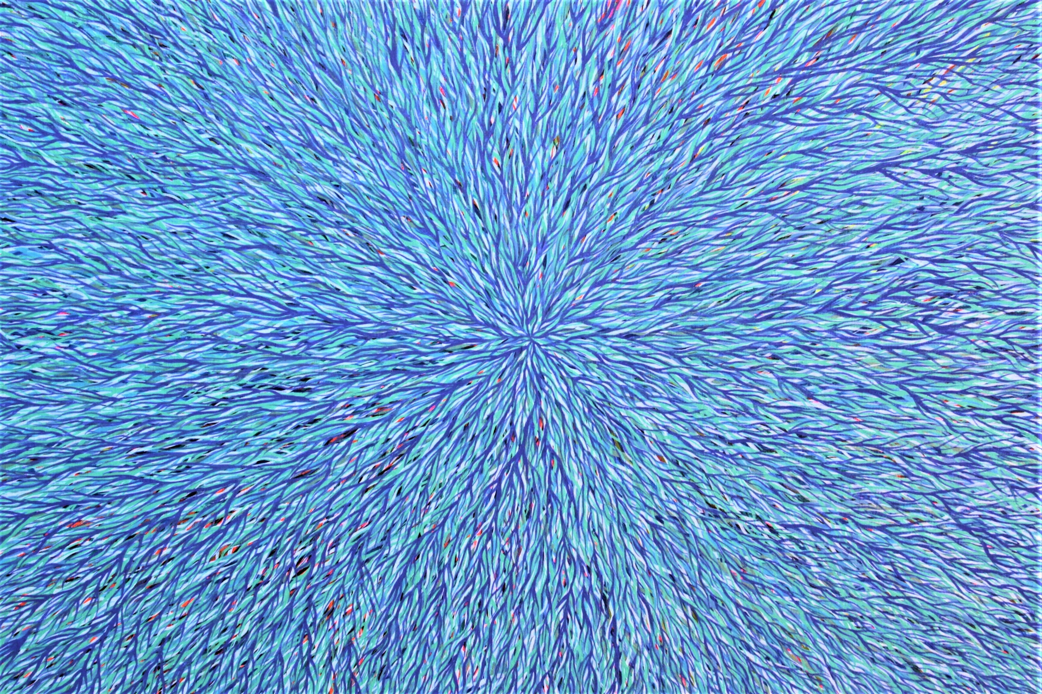 毎日の生活の中で生まれた、誰にも言う事のない感情が言葉にならず長い時間をかけて線になったものが私の絵です。