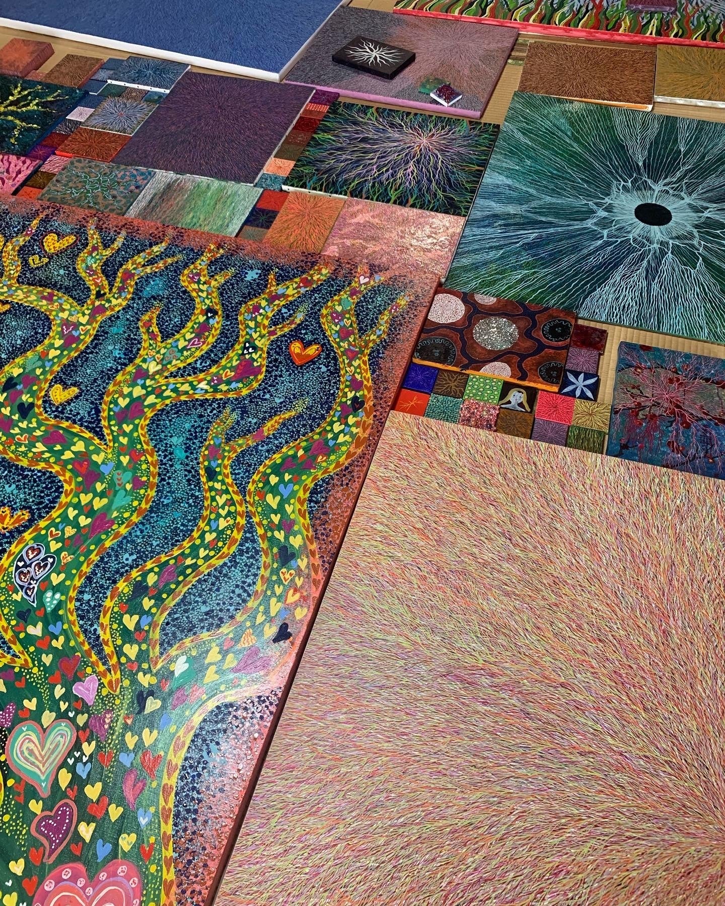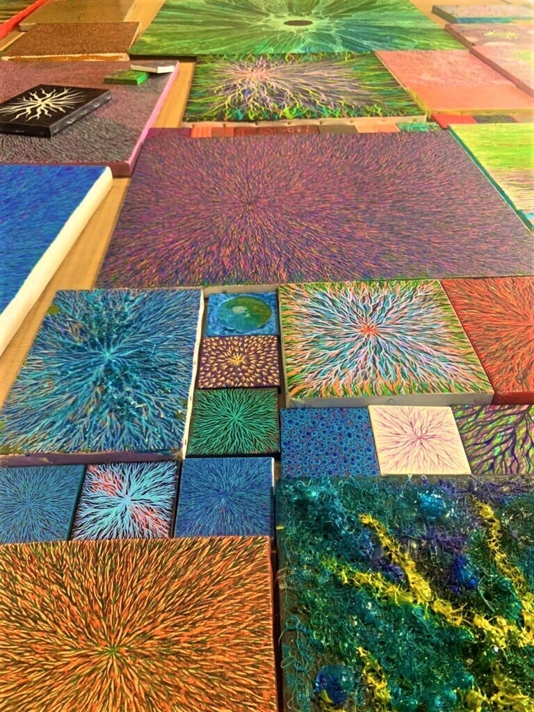 家で過ごす多くの時間を絵に費やし、気が付けば部屋を覆う量の絵に囲まれてしましました。