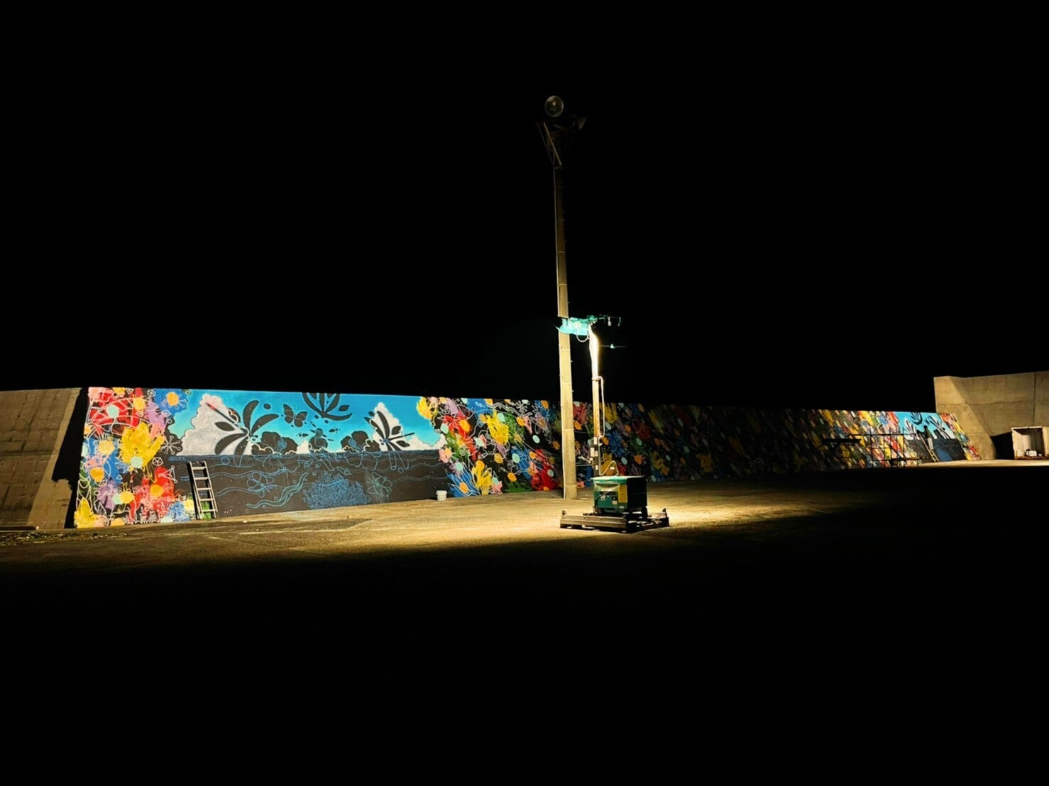 徐々に壁画の全体が見えてきた最近。壁画アーティストさんんのロコ・サトシさんも岩切章吾さんも完成にむけてのラストスパートへ!