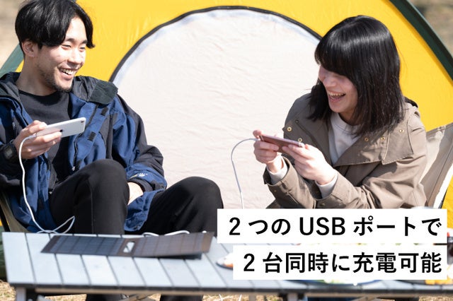 「ペーパー型太陽電池 MS001」には、USBポートが2つ搭載されています。