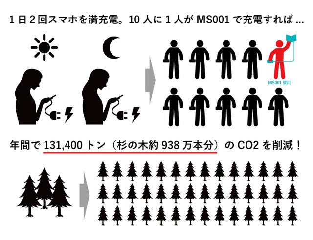そこで「ペーパー型太陽電池 MS001」は“蓄電しない”という一見デメリットに見える仕様にすることで、それらの実現を可能にしました。