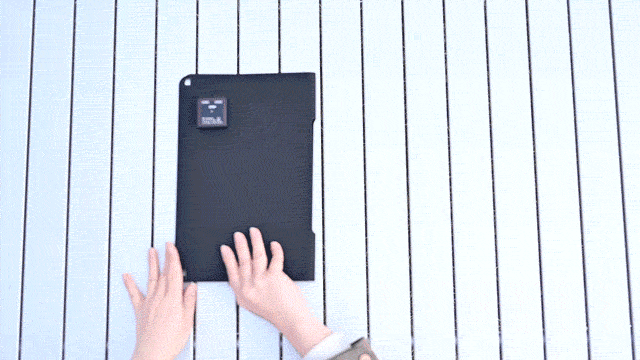 でも「ペーパー型太陽電池 MS001」なら薄くて軽量。さらに2つに折り畳めるから、バッグの中にスマートに収納することができます。