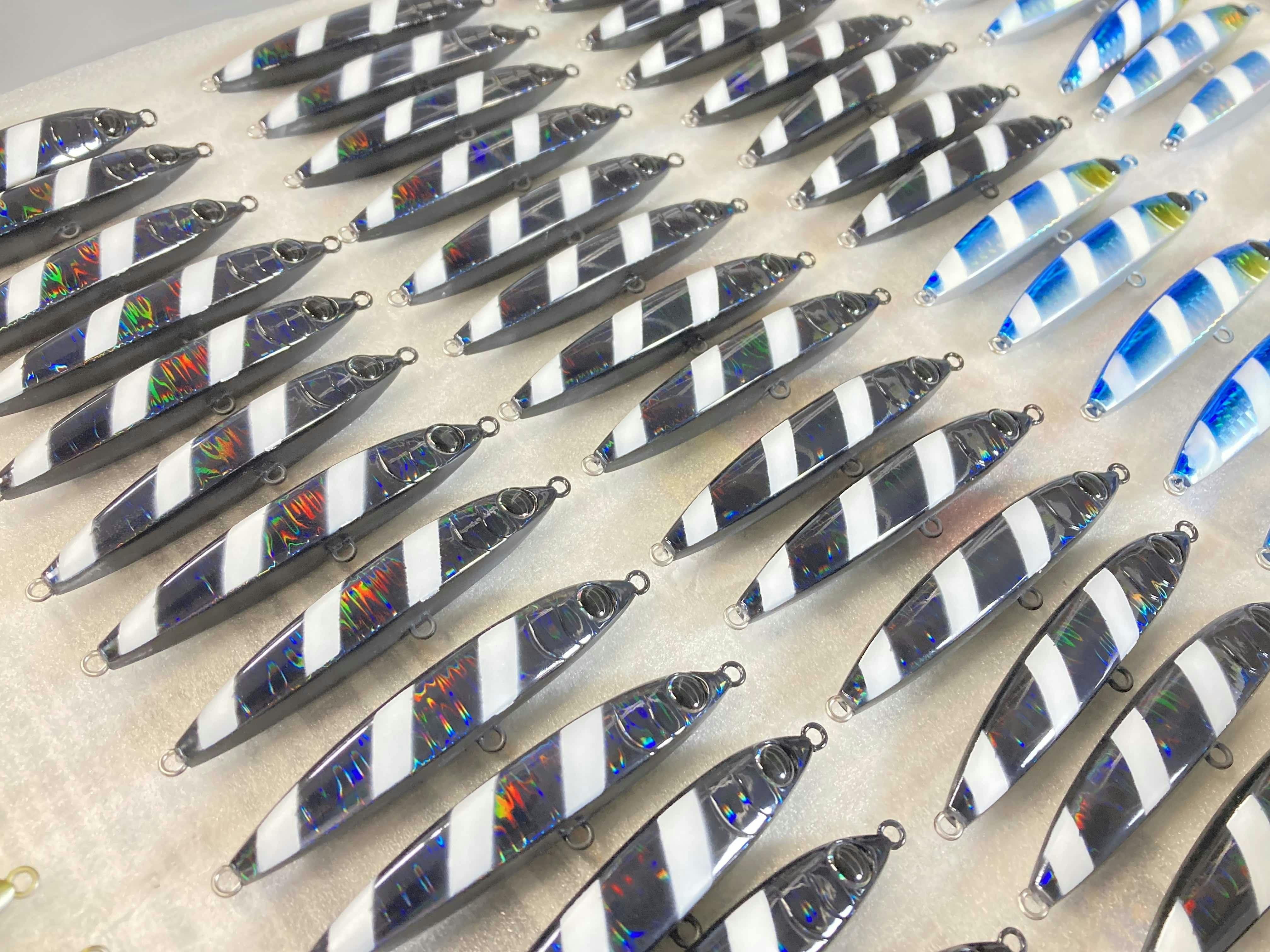 国産のホログラム紙をルアーに転写します。ルアーのカラーによってホログラムの柄を選定し、バリエーション豊かにします。