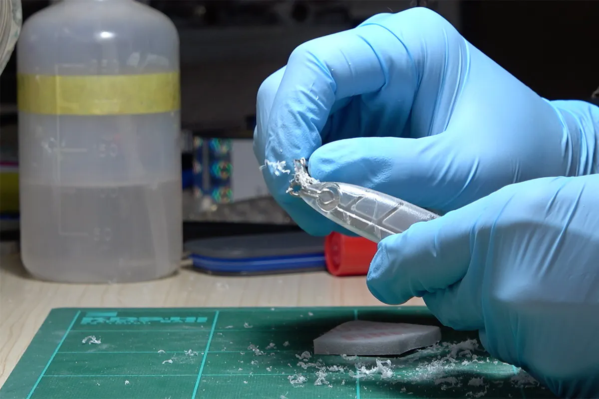 ABS樹脂の板からプロトタイプを削り出します。何度もスイムテストを繰り返しながら形状・重さなど調整していきます。