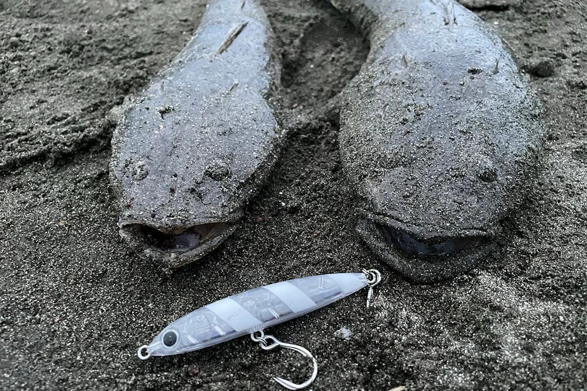 全カラーゼブラグロー搭載の為、やはりマヅメ時やナイト、曇り空、濁りが強い局面などにソルトゲームのメインターゲット全般に対し反応は良い。特に青物、根魚、フラットフィッシュなどの反応が良くたくさんの釣果が上がっている。ただ巻きやトゥイッチ、ジャークなどのリトリーブ中はもちろん、フォール中のバイト率がかなり多くフォール中も気の抜けないルアー。