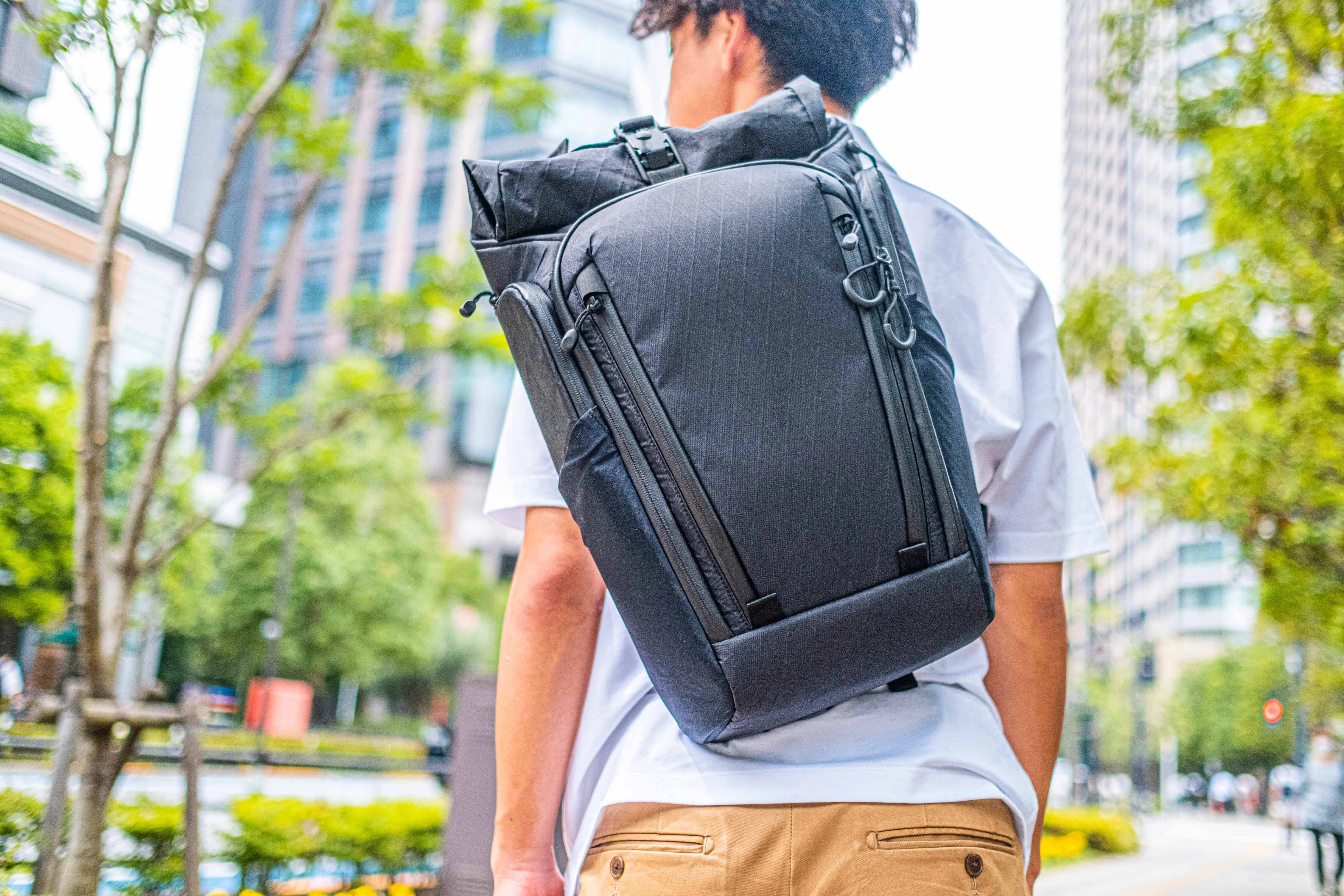 そもそもDAYFARERブランドのバッグは、荷物の整理がしやすい工夫がされていることが多いのですが、今回のMODERN PACK 16Lにも荷物のオーガナイズをしやすくする機能性が搭載されていて、メインのコンパートメントがスーツケースのように全開するようになっています。もちろん、旅行のようなシーンに限らなくとも、日常のシーンでもけっこう役立ちますよ。
