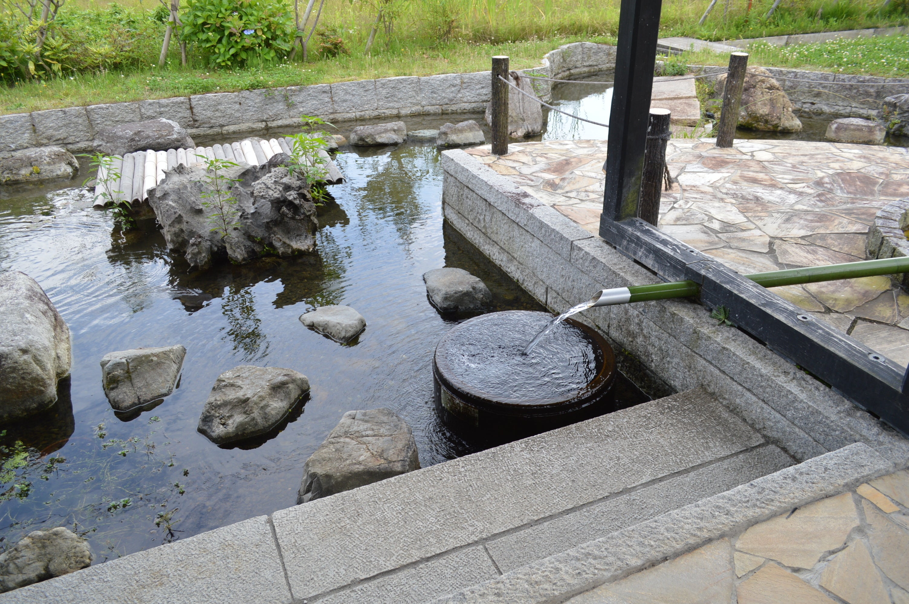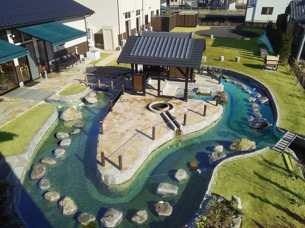 ラシーヌホーム針江では敷地内の庭園にこの伝統様式に忠実な川端(かばた)が設置されているため、川端ライフが疑似体験できるようになっています。