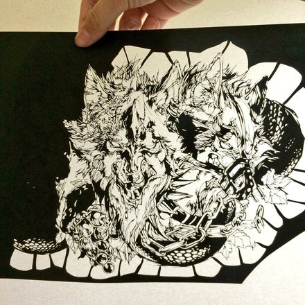 お久しぶりです、烏海です。 ただいま大作切り絵に着手しております。 こちら、個展で展示予定です。 この他に非公開のまま個展に持っていく作品もございます、是非ご覧いただければと思います!