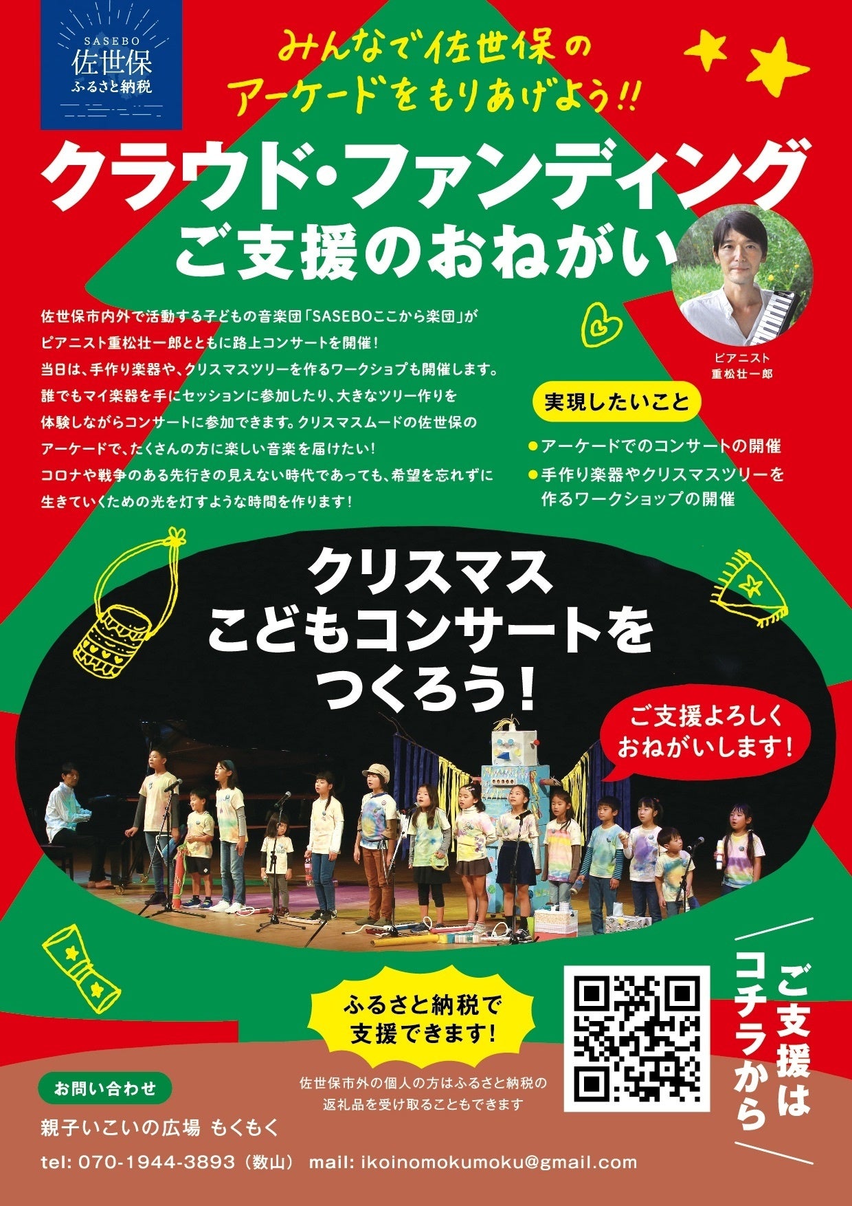 ピアニスト重松壮一郎が、佐世保の子どもたちと一緒に作った「SASEBOここから楽団」で、クリスマスに路上コンサートを開催します!