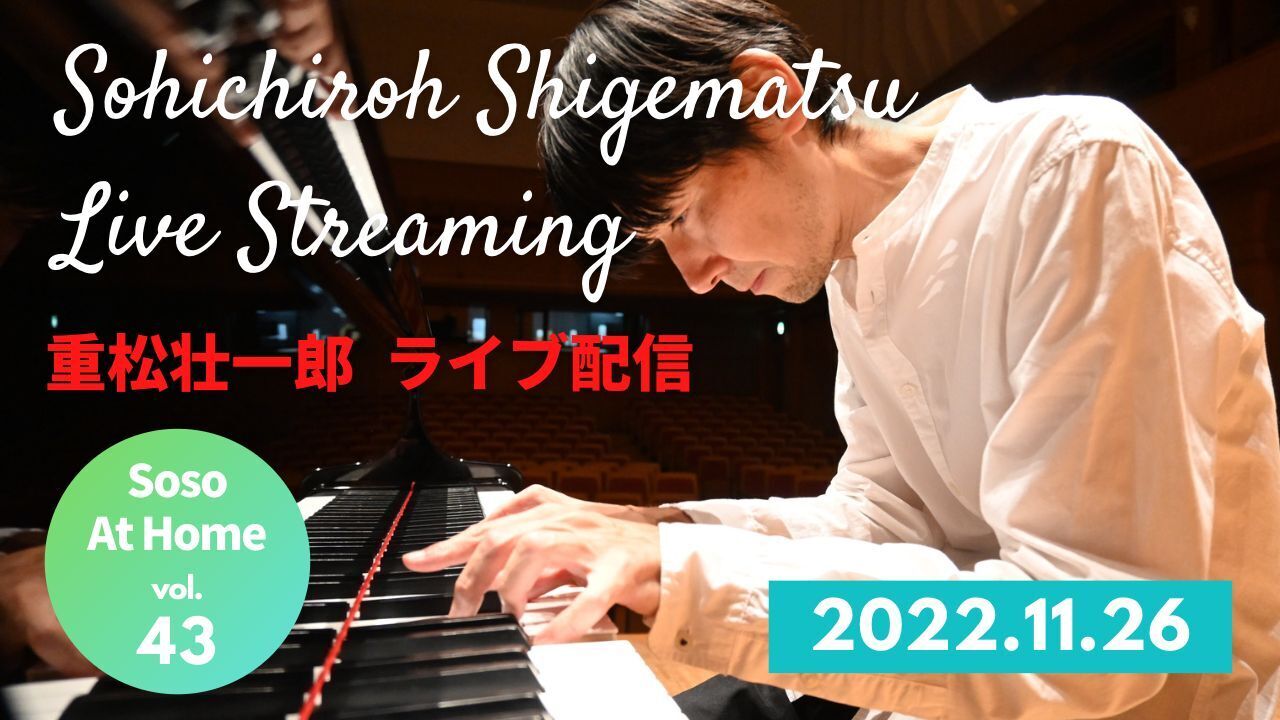ピアニスト重松壮一郎が自宅よりコンサートをライブ配信する43回目。