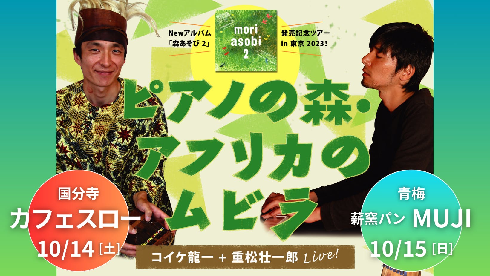 アフリカの優しい音色を響かせるムビラ奏者「コイケ龍一」と、全てのいのちとの共鳴を音に紡ぐピアニスト「重松壮一郎」。コロナ禍の2022年に発表した13年ぶりの共演アルバム「森あそび 2」の、ちょっと遅れの発売記念ライブを開催!