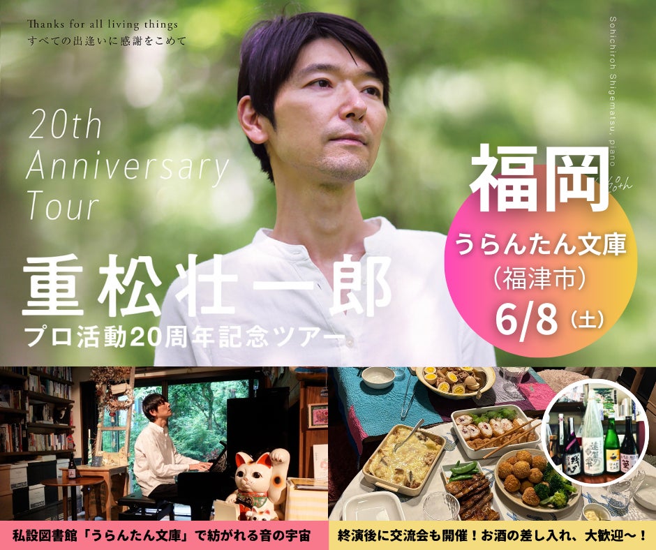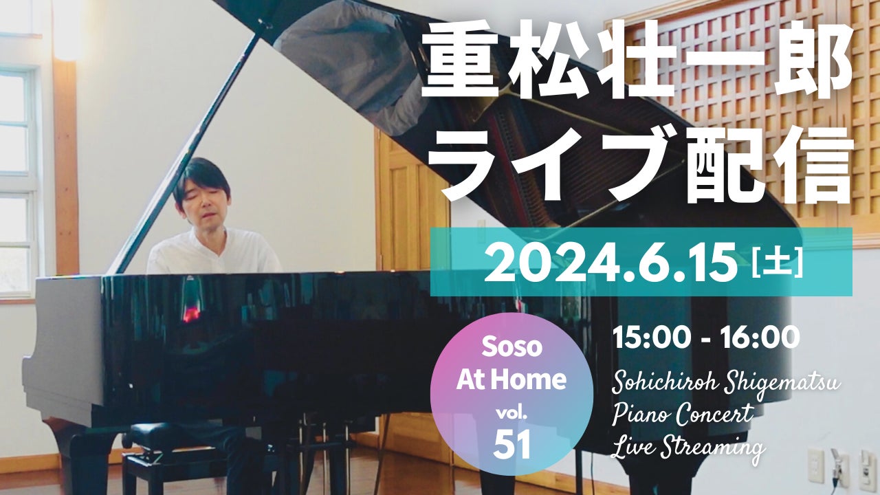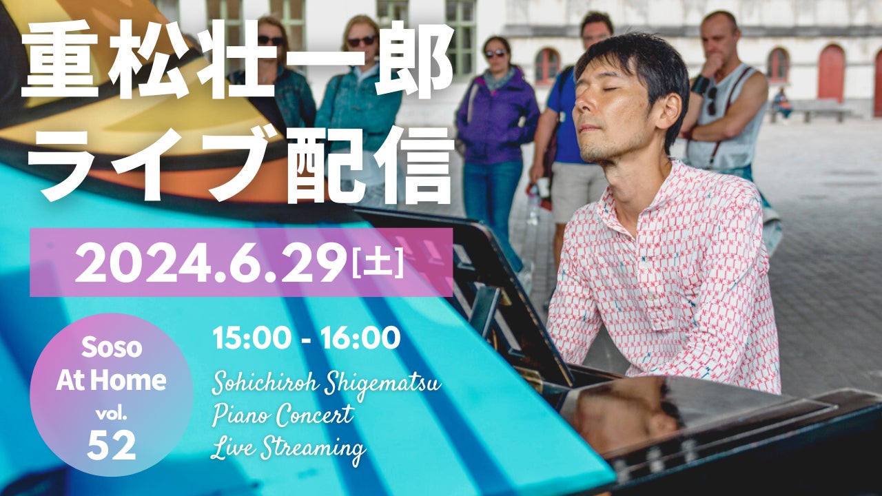 ピアニスト重松壮一郎が自宅よりコンサートをライブ配信する52回目。しとしとと降る雨の合間に、ときおり差す太陽の光が、世界をキラキラと輝かせます。梅雨入りした長崎から、この季節ならではの音を、その日限りの演奏でお届けします。慌ただしい日常から少し離れて、ゆっくりとした午後のひとときをお過ごしください。即興演奏とオリジナル曲で構成する、1時間のピアノ・ソロ・コンサート。視聴は無料です。よろしければオンライン投げ銭をお願いします。━━━━━━━━━━━━━━━━━━━Soso At Home - vol.52重松壮一郎ライブ配信━━━━━━━━━━━━━━━━━━━◯とき: 2024年6月29日(土)◯会場: オンライン(重松壮一郎YouTubeチャンネル)◯時間: 15:00 - 16:00◯料金: 無料(オンライン投げ銭あり)◯出演: 重松壮一郎(ピアノ)◎ライブの詳細http://www.livingthings.org/schedule/240629_athome/───────────────配信アドレス───────────────重松壮一郎YouTubeチャンネルhttps://youtube.com/live/EQ0xYdfo55Q(チャンネル登録をぜひお願いいたします)───────────────オンライン投げ銭の方法───────────────いつもご支援ありがとうございます。動画が気に入られたら、オンラインにて投げ銭をお願いいたします。■Peatix(ピーティックス)クレジットカード、コンビニ、ATM対応https://240629sosoathome.peatix.com■PayPal重松壮一郎のメールアドレス soso@livingthings.org に送金ができます。世界各国の通貨に対応。https://www.paypal.com■LINE Pay友達同士で手数料なしで送金ができます重松壮一郎のLINE ID: soso@livingthings.org_piano■noteクレジットカード、携帯キャリア決済対応。任意の金額で、少額から寄付ができます。https://note.com/soso_piano/n/ne5b5276127a2■銀行振込振り込み後、ぜひご連絡ください。お礼を一言申し上げさせていただきたいと思います!<ゆうちょ銀行から>記号: 16280番号: 3354341名義: 重松壮一郎(シゲマツソウイチロウ)<楽天銀行から>金融機関コード: 0036支店番号: 248貯金種目: 普通預金口座番号: 2105893名義: 重松壮一郎(シゲマツソウイチロウ)──────────────────出演者プロフィール──────────────────ㅤㅤ■重松壮一郎(ピアニスト、作曲家、即興演奏家)http://www.livingthings.org即興演奏とオリジナル曲を主体とした独自のスタイルで、全国・海外にて年間150回近いライブを行う。アメリカ、オーストラリア、タイ、ヨーロッパなど海外でも多数公演。「生きとし生けるものすべてに向けた音」をテーマにしたオリジナリティ溢れる楽曲、人と自然をつなげるようなオーガニックな音色は、ジャンルや世代を越え、多くの人々の心を打ち続けている。被爆ピアノの演奏や、平和コンサートの企画、被爆者とのコラボレーション、原爆をテーマにした楽曲の制作など、音楽を通じた平和活動も積極的に行う。子どもの歌の作曲、映像作品やCMへの楽曲提供なども多数行っている。アルバム「beyond」「tsumugi」「森あそび 2」、シングル「妖精たちのぶとうかい」「わたげ」は、iTunes、Amazon等にて、好評配信中。コロナ以後は、重松壮一郎 YouTubeチャンネルでのライブ配信、Podcastにてネットラジオ「Soso’s Radio」配信、子どもたちのとの楽団活動、音楽劇「共生する音楽」の企画制作など、困難な状況だからこそよりクリエイティブに、精力的な活動を展開中。2023年1月、10年ぶりとなるソロ・アルバム「beyond」を発表。ㅤㅤㅤ★ライブ・スケジュールhttp://www.livingthings.org/schedule★演奏依頼http://www.livingthings.org/offerㅤㅤㅤ
