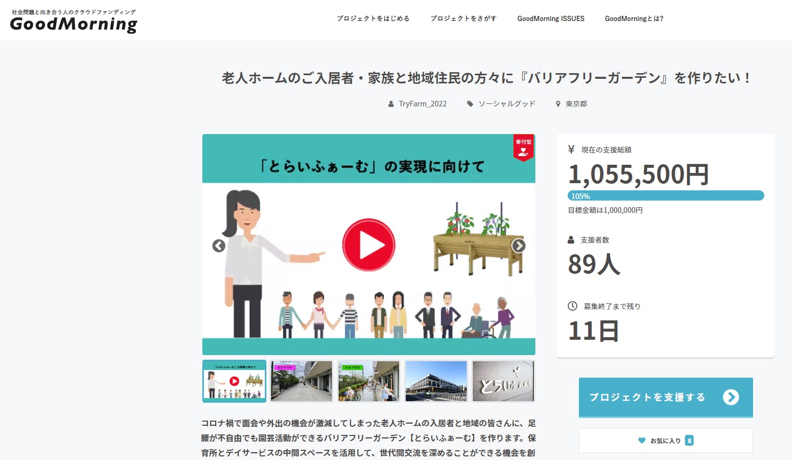 クラウドファンディングの募集終了まで、残り11日間あります。