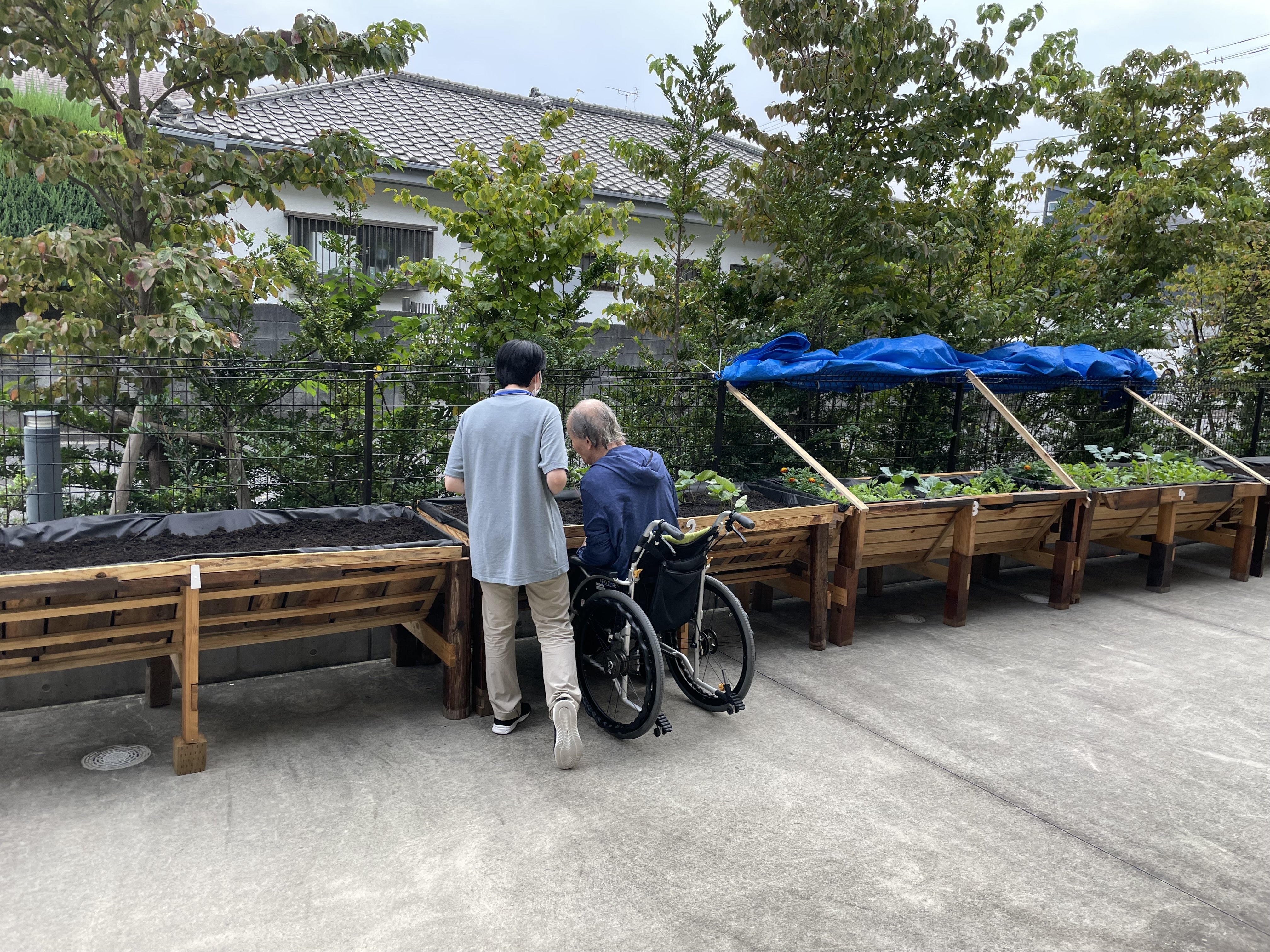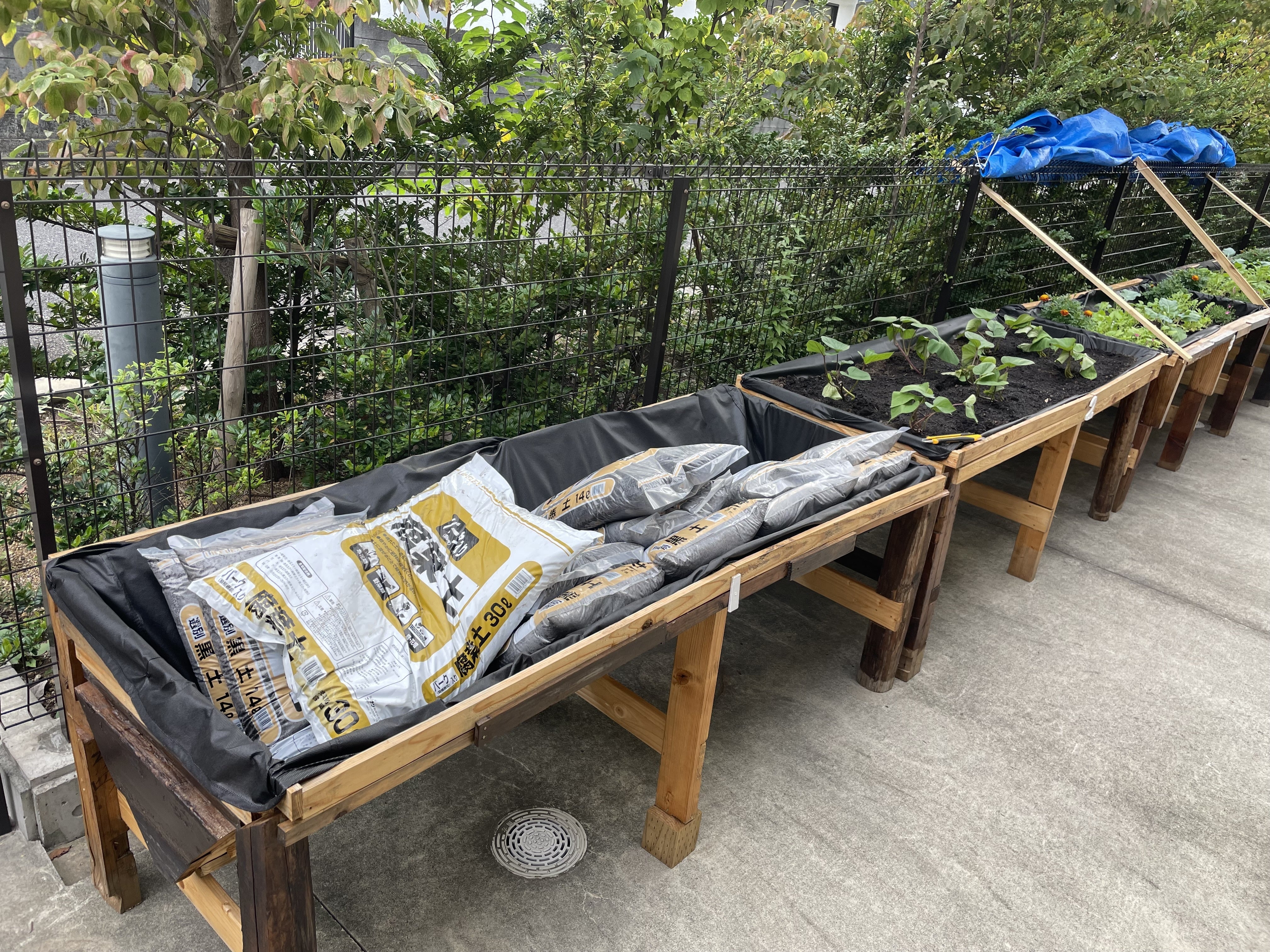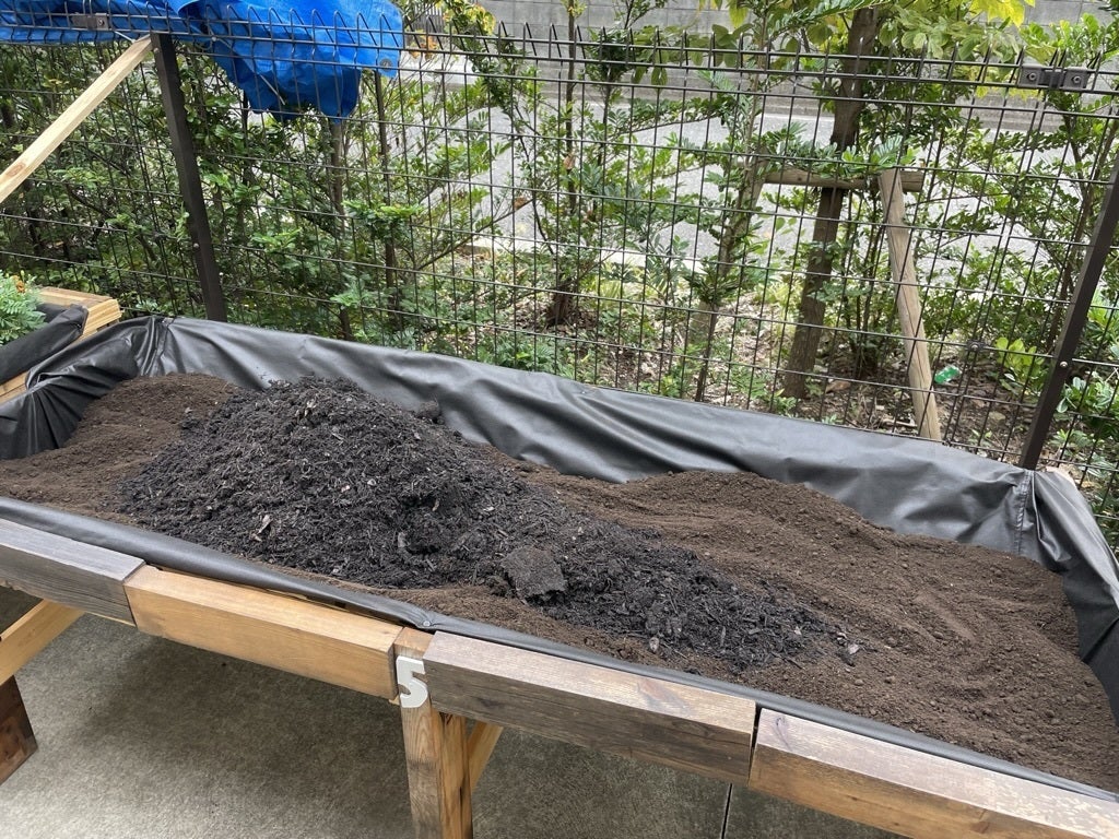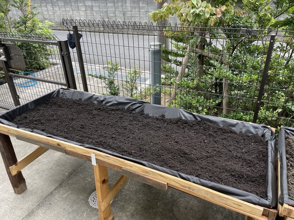 今回、2基分の土入れをしたのは、介護現場をまとめるリーダーの一人から「いろいろと種を買ってきた」と(唐突に!)声をかけられたためです。主催側が嘆願したわけではなく、現場で忙しく働く職員や、ご入居者・ご家族のほうから「ここで〇〇がしたい」という意思表示をしていただけることは、私たちにとって最高の喜びです。