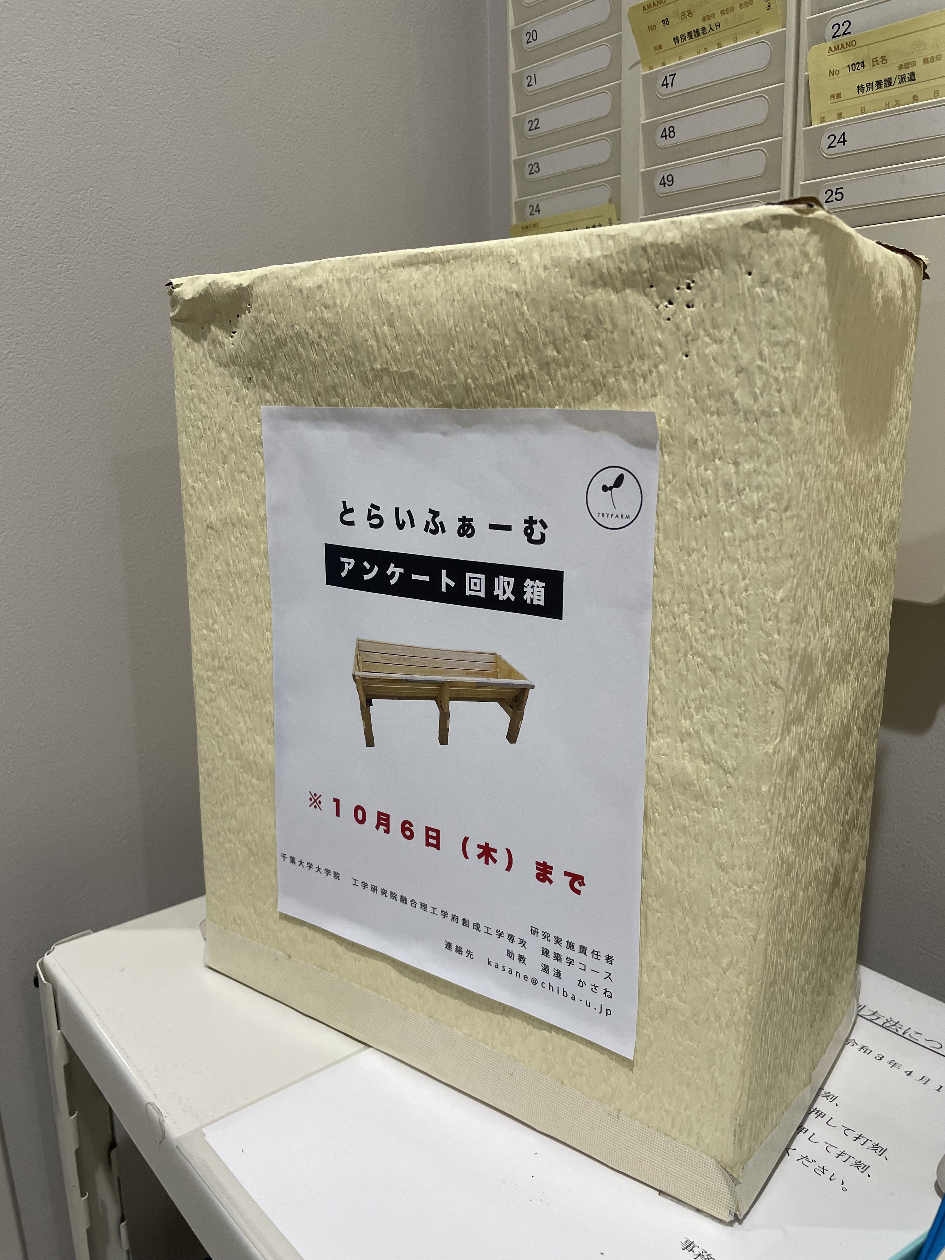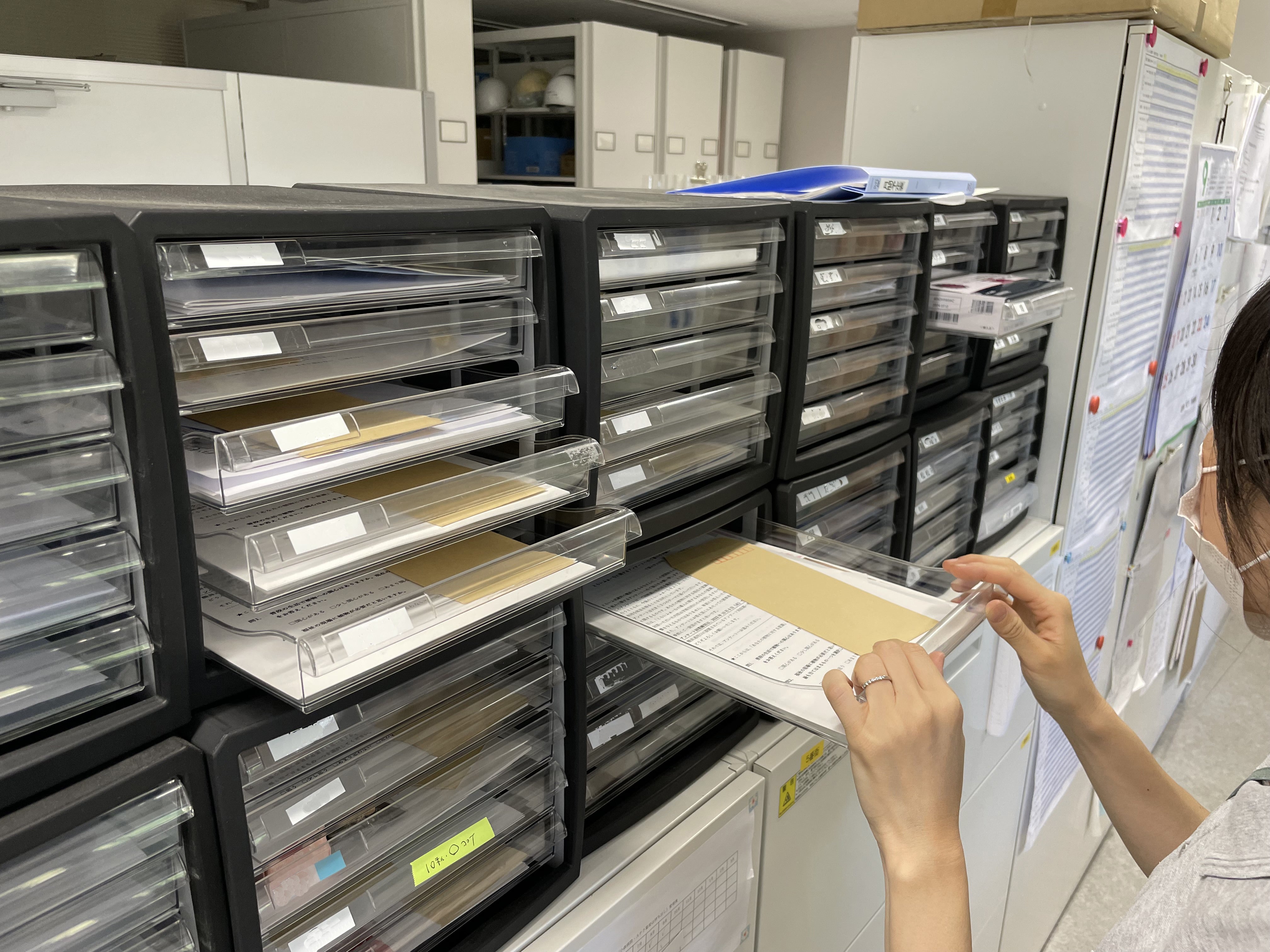 ▼事務所の中にある、一人ひとりの職員のレターケースにアンケート用紙を配布しました。
