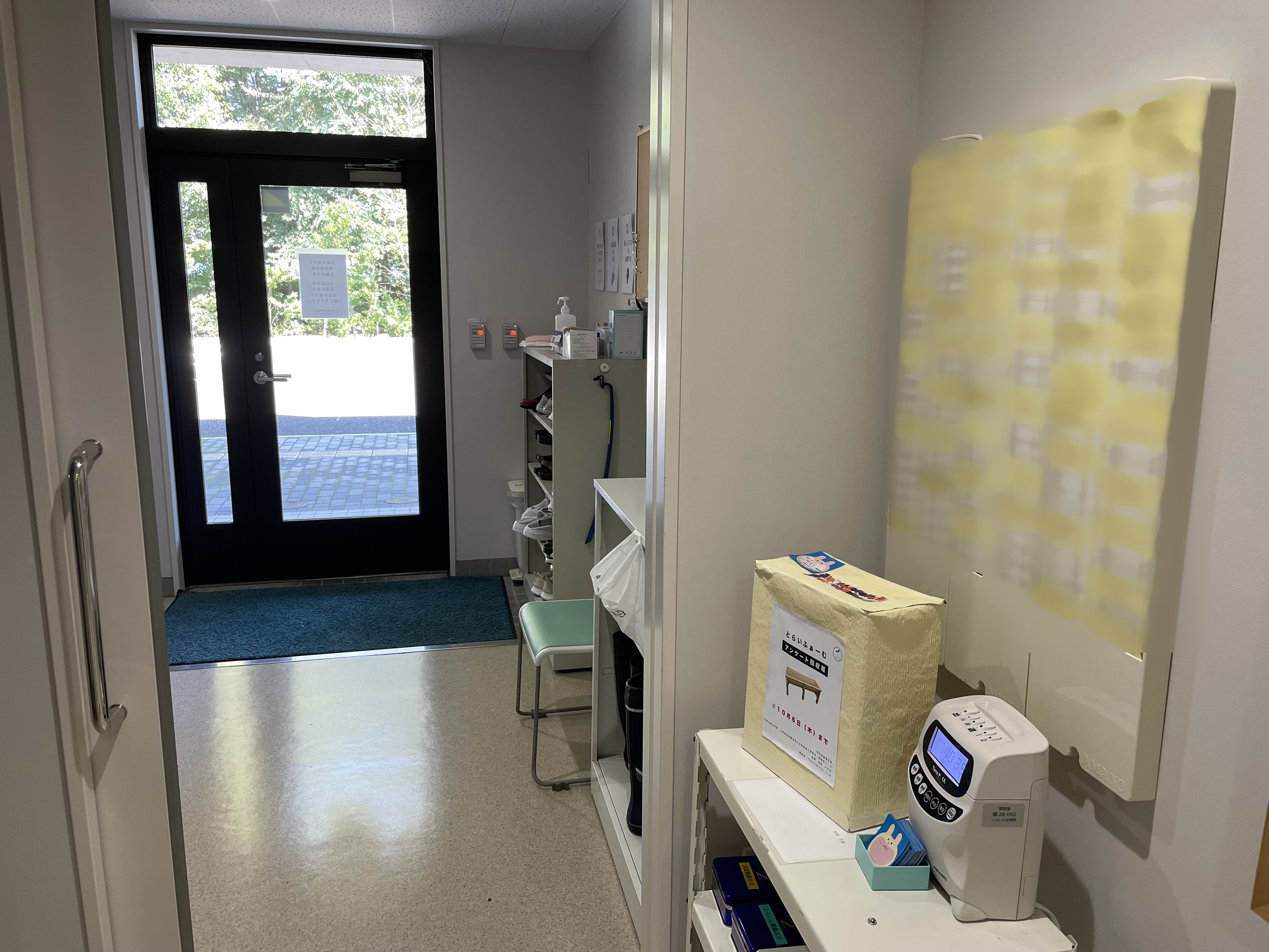▼アンケートの回収ボックスは、職員玄関の奥に設置しました。