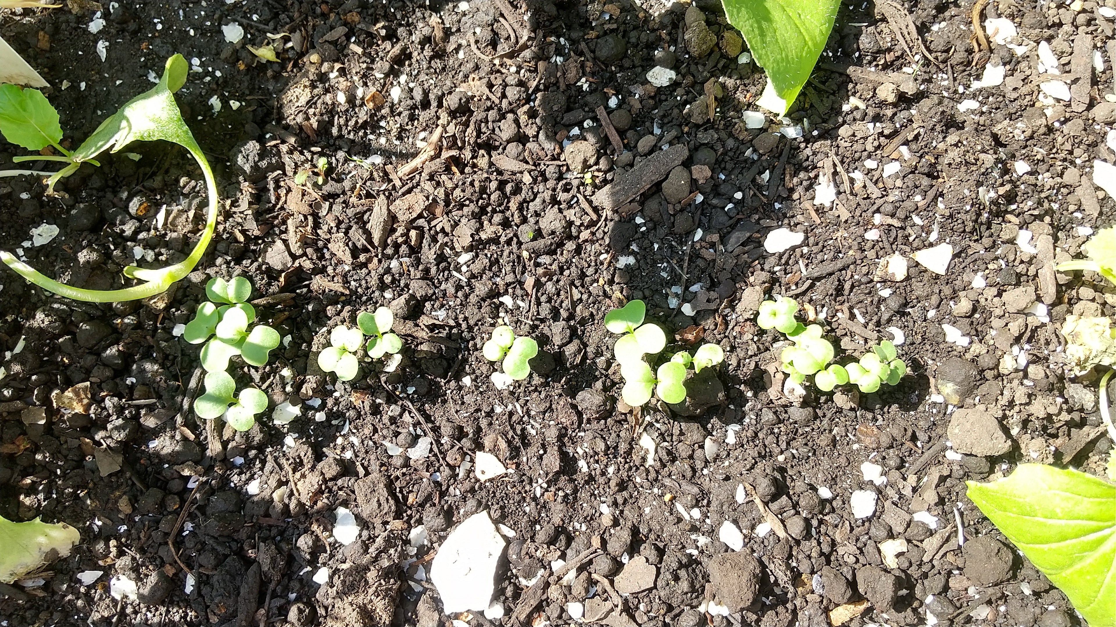 台風で流れてしまった小松菜ゾーンに新しく種を蒔いて4日目