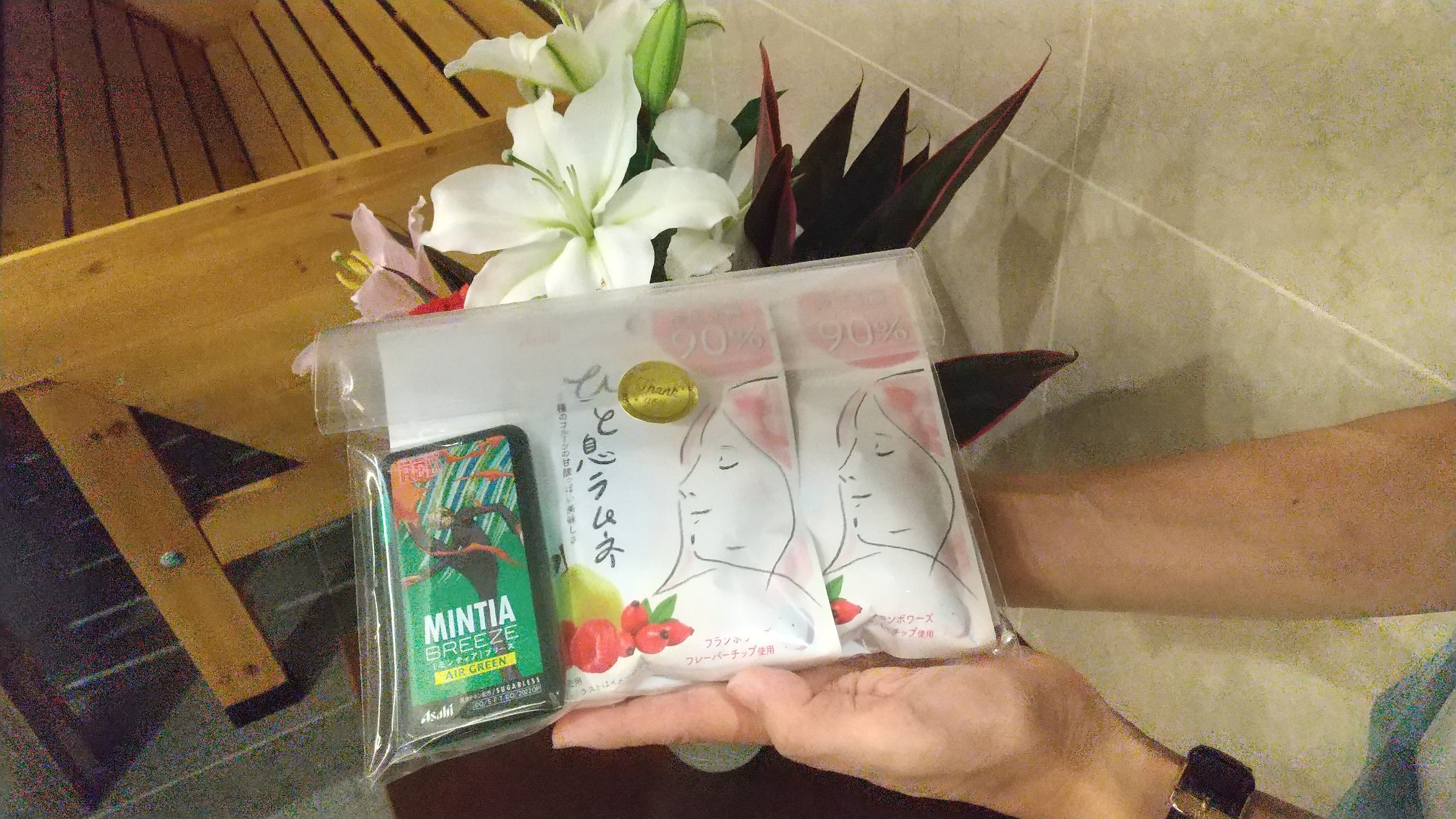 (色々なお菓子を組み合わせてラッピングしました)