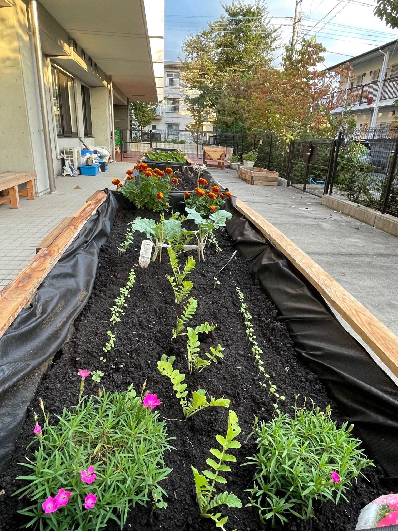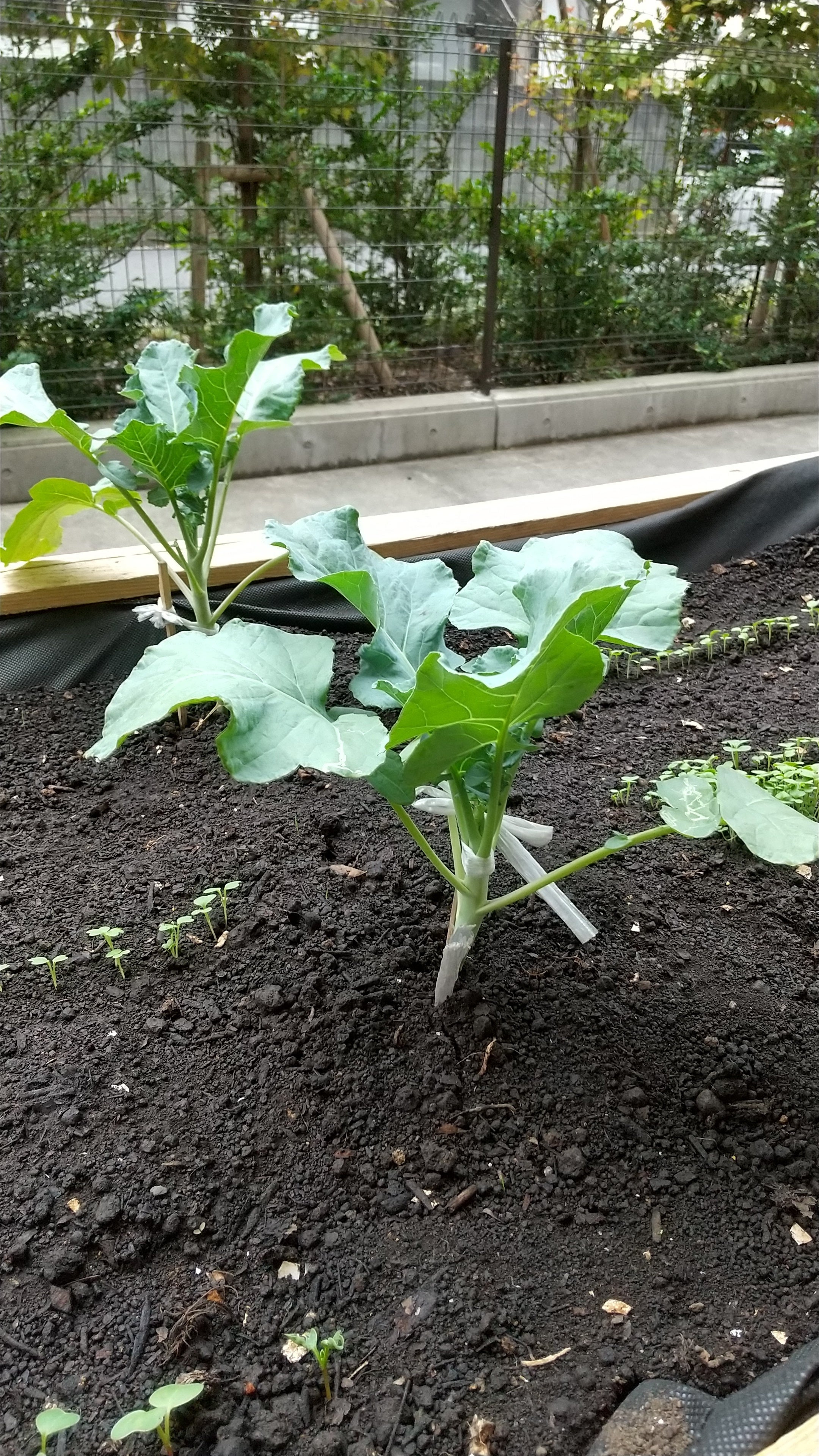 ▲新たに、のらぼう、辛味大根、ミニ白菜(左→右)を植えました。