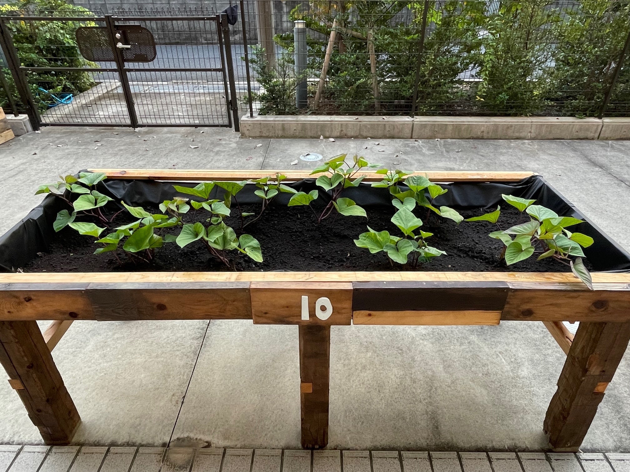 ▲こちらがさつまいもです。いま、ふぁーむの中で一番元気に育っています。