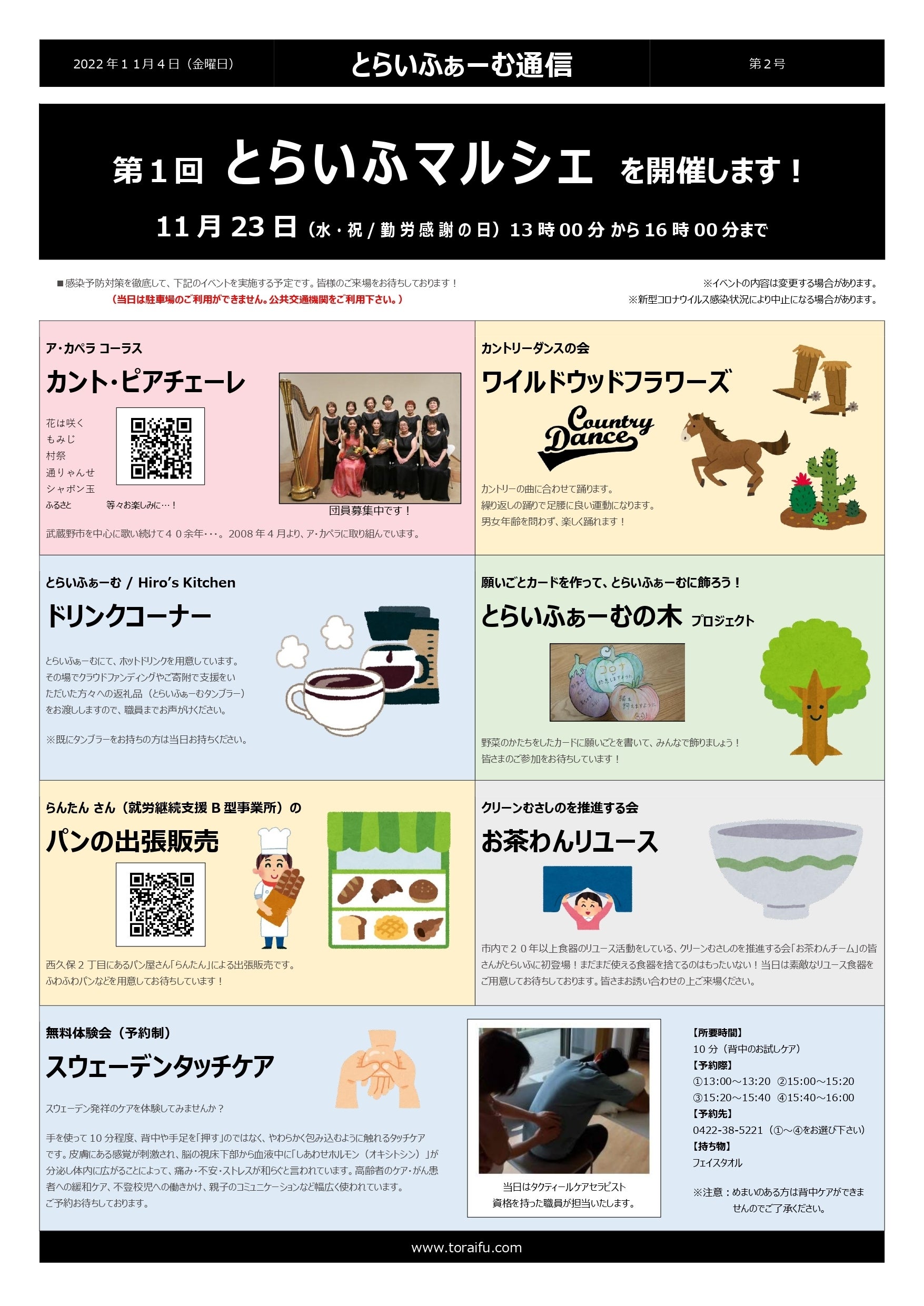 11月23日(水曜日 勤労感謝の日)に第一回とらいふマルシェを開催いたします。