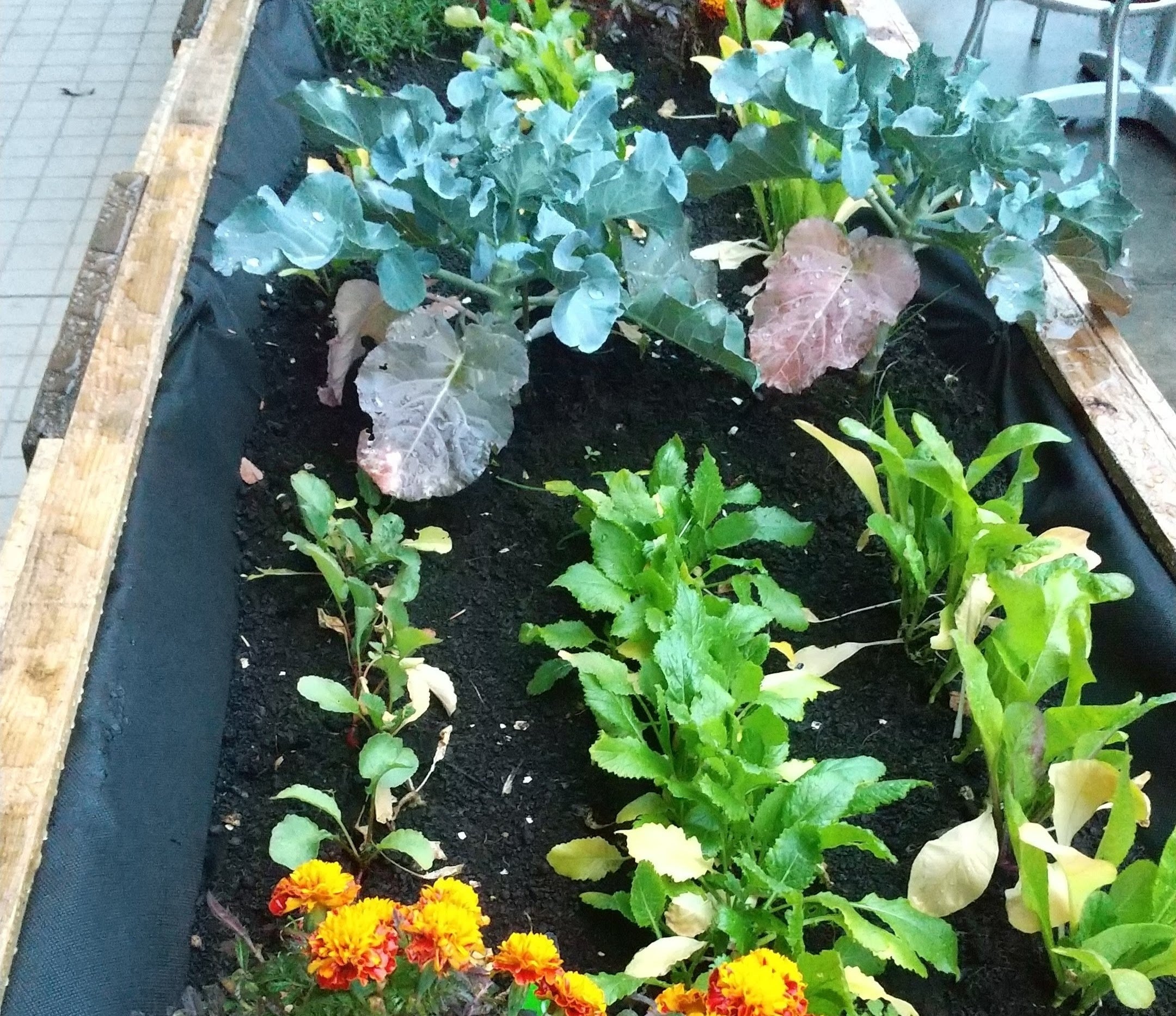 早速お二人から「実が割れてきている大根・はつか大根・かぶ、葉が黄色くなってきている小松菜やブロッコリーを早く収穫した方が良い」とのアドバイスを受け、職員の宮澤が「大切に育てた野菜たちを、一番美味しい状態で食べてあげたい!」と熱く語りながら、手早く収穫して調理してくれました。