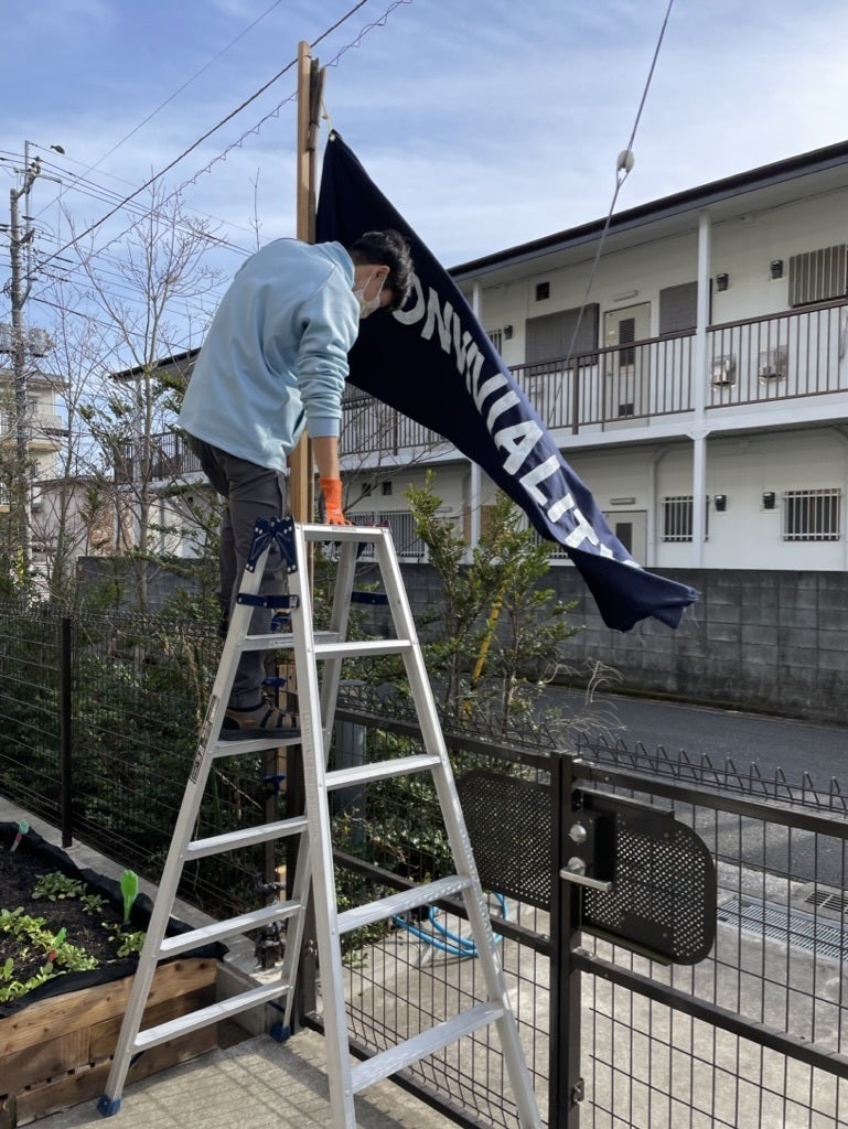 今月初頭に掲げたとらいふぁーむの旗は、強風によって早速破損してしまいました。