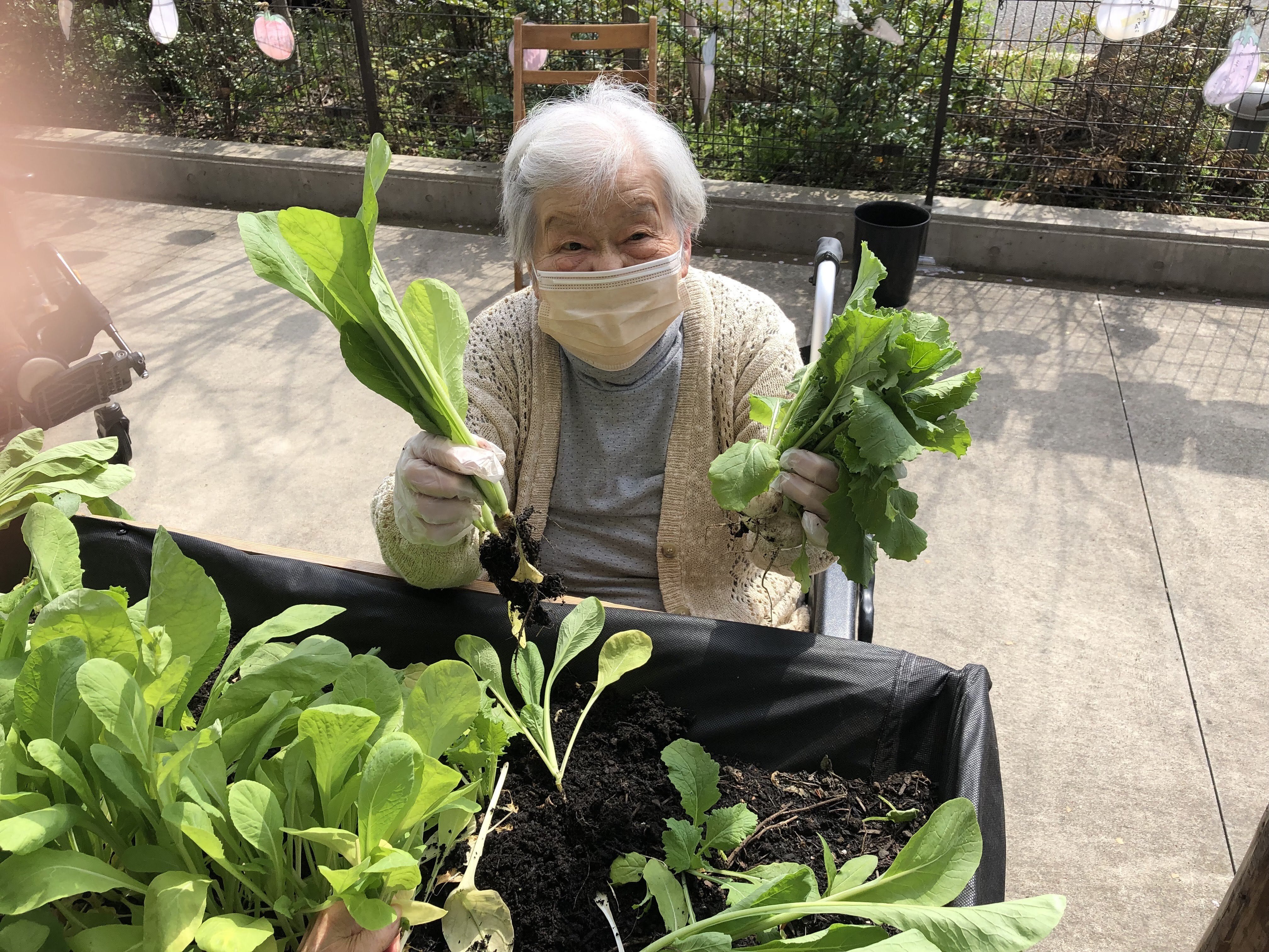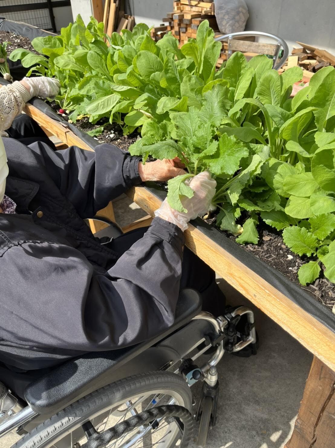 「いつの間にこんな野菜を育ててたの?すごいね!いいね!」(介護職員Yさん)