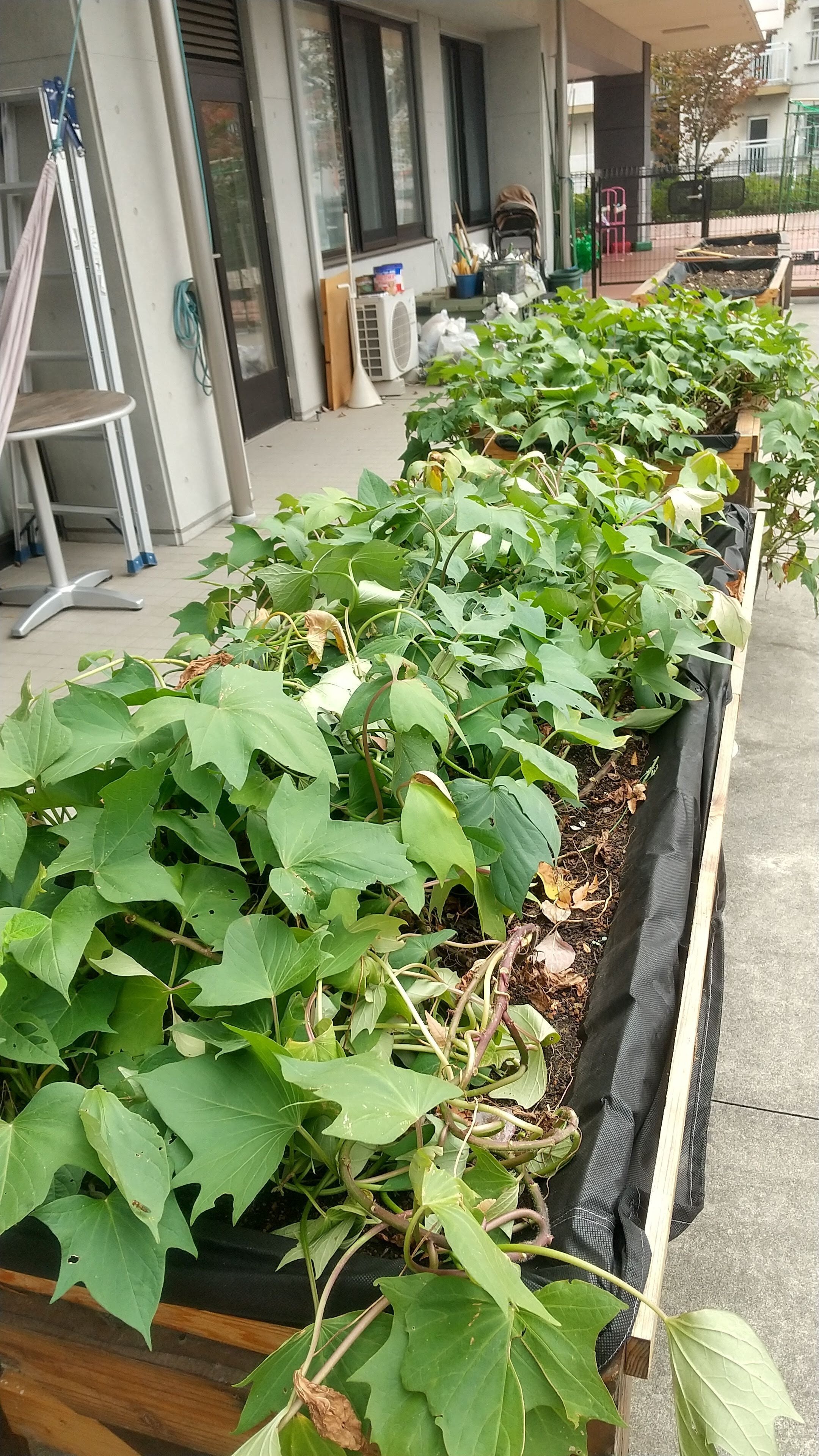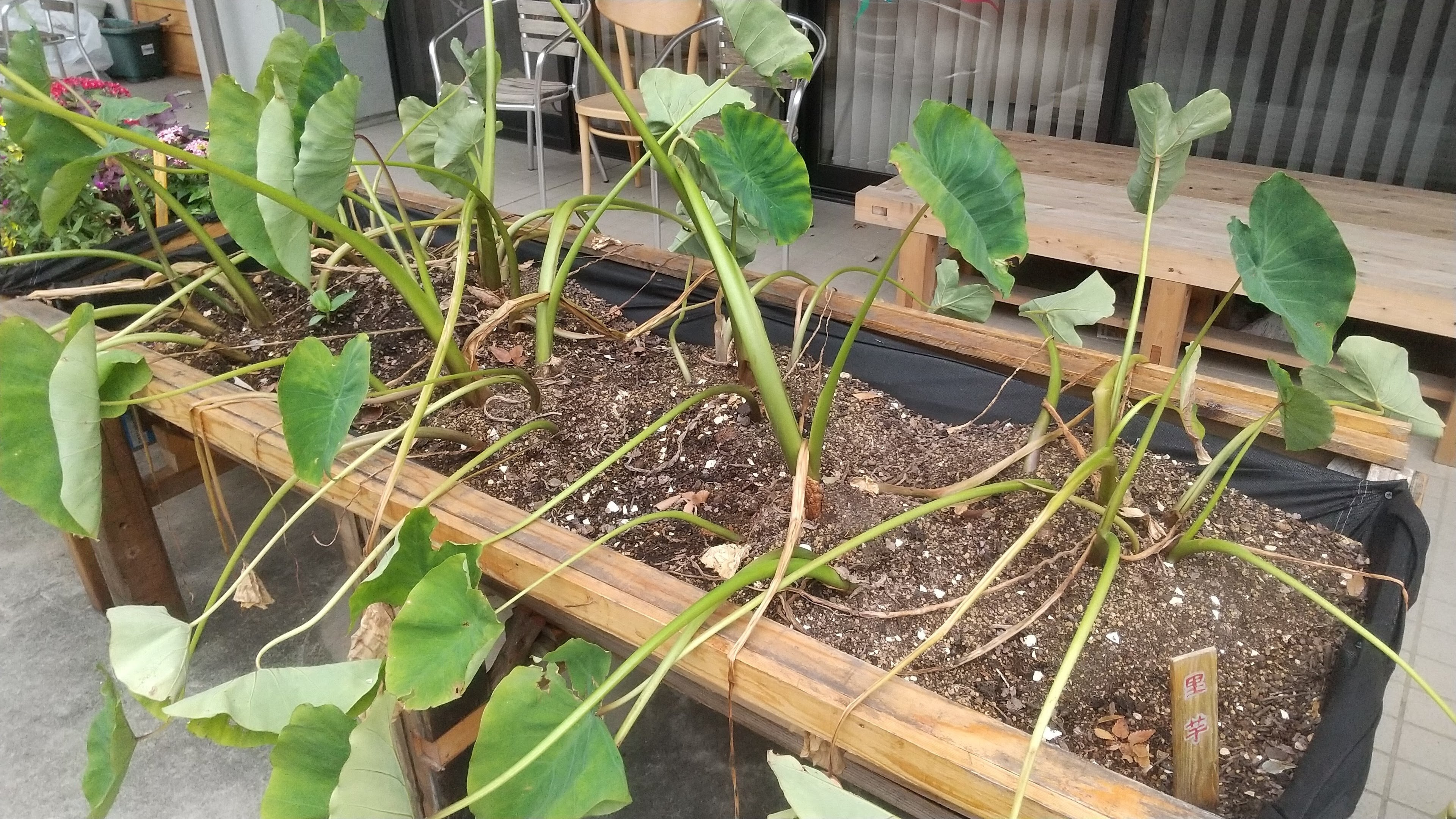 秋真っ盛りのとらいふぁーむでは、里芋やさつま芋が収穫の時を待っています。