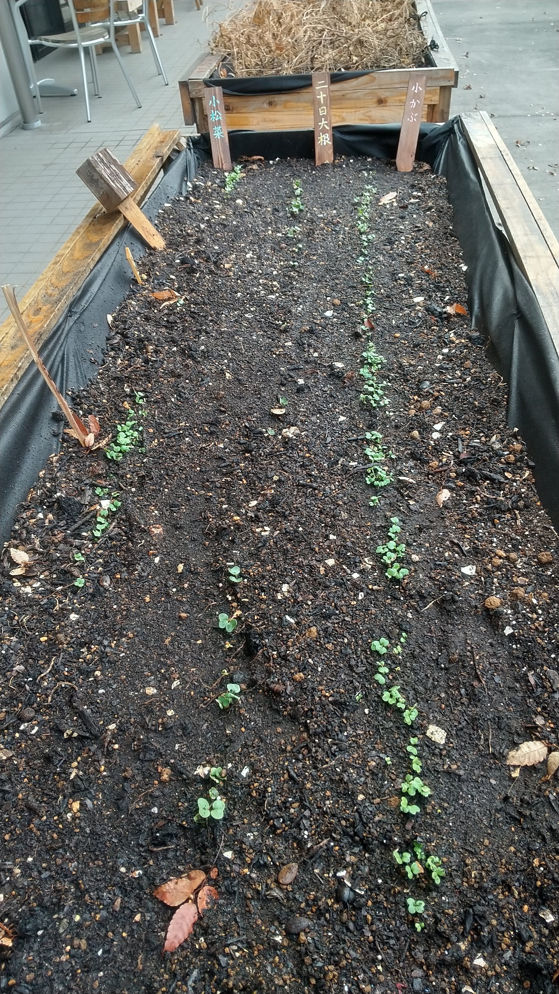 小松菜・はつか大根・小かぶの小さな芽が顔を出しました