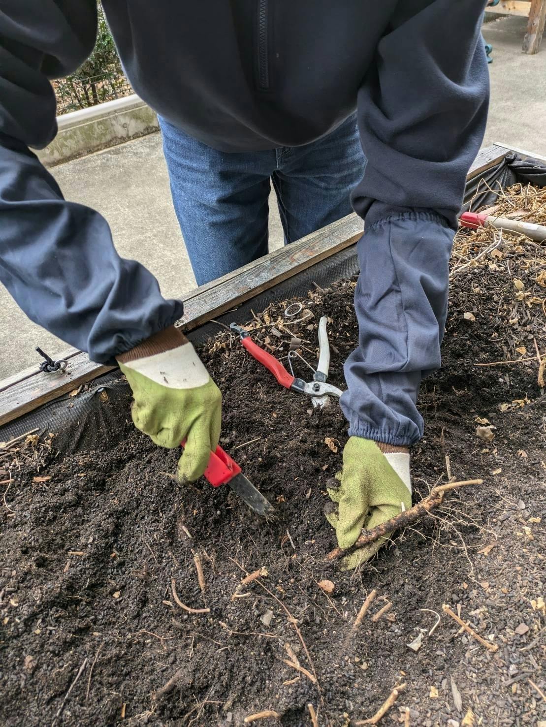 さらに、越冬に成功したとらいふ製のホップ苗は、近隣の特別養護老人ホーム武蔵野館さんの庭で栽培するために持ち運ばれていきました。