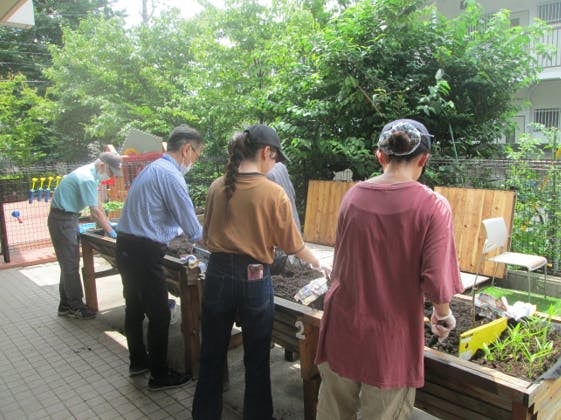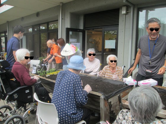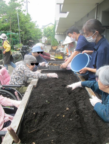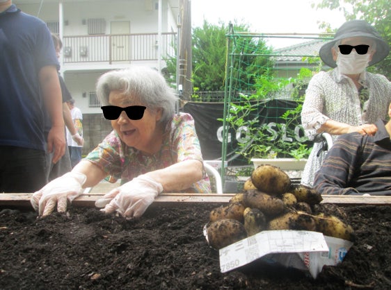 6月26日、特別養護老人ホームとらいふ武蔵野のバリアフリーガーデン「とらいふぁーむ」にて、芋掘りレクリエーションを行いました。