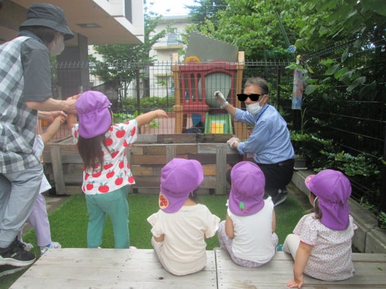 ▲顧問は(腰痛がつらいのに)園児たちのために場を盛り上げてくれました。