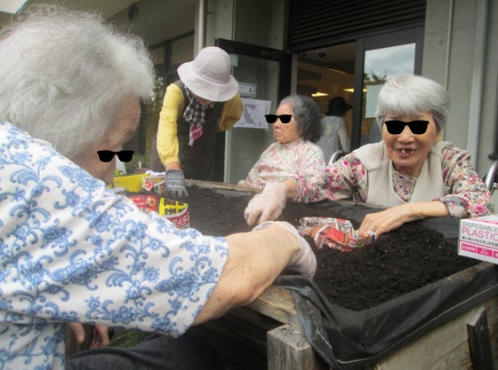 ▲ とらいふぁーむは「バリアフリーガーデン」なので、車椅子に座っていても芋掘り、園芸ができます!