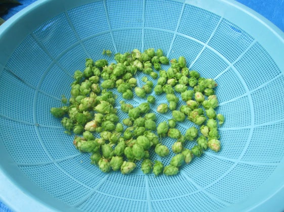 さらに、今年は例年より少し早く、同日にホップの収穫も行いました。不安定な天候が続いていたため、傷む前に収穫する判断をしましたが、鞠花はとても良い状態で、美しく実ってくれました。