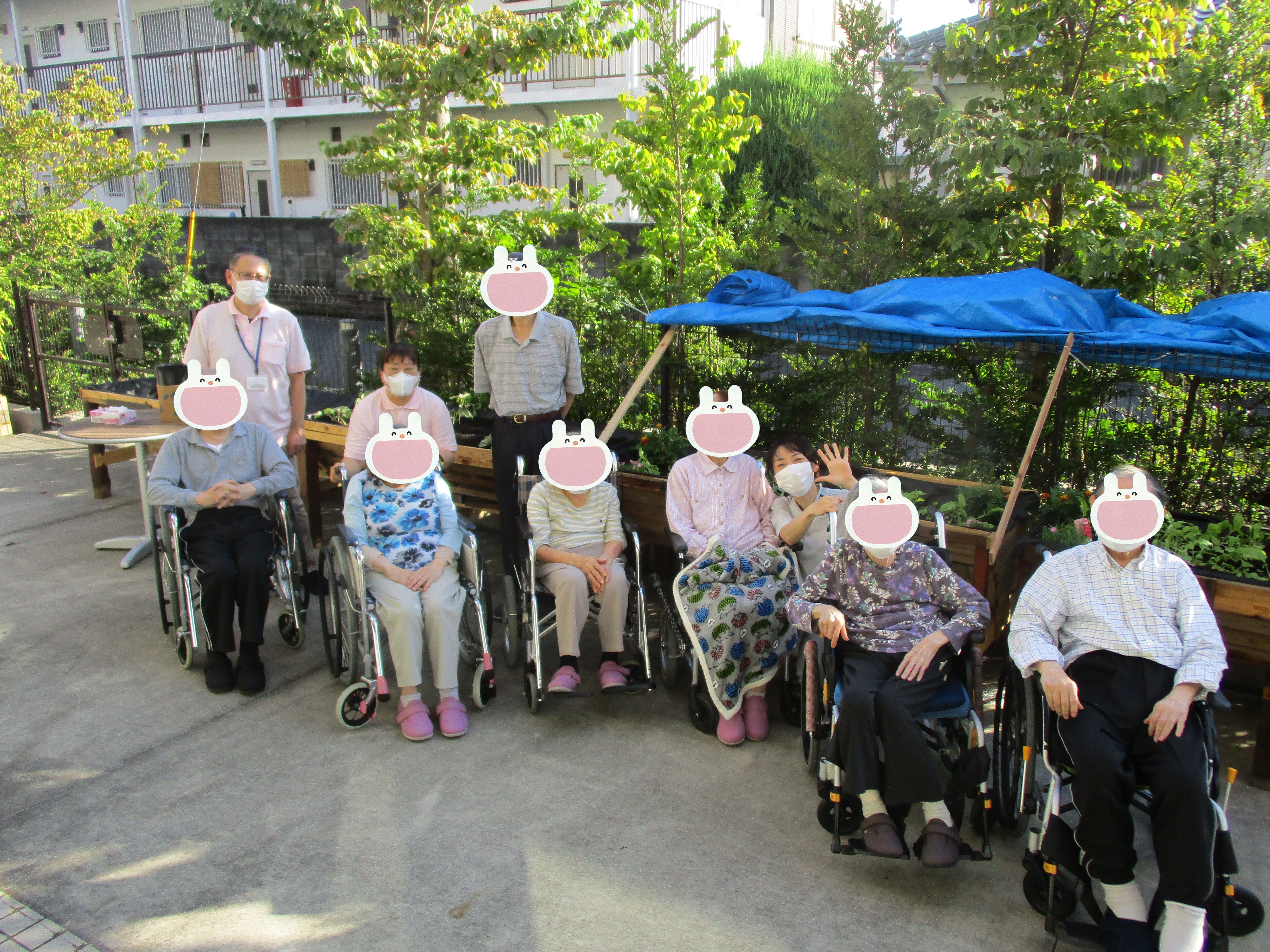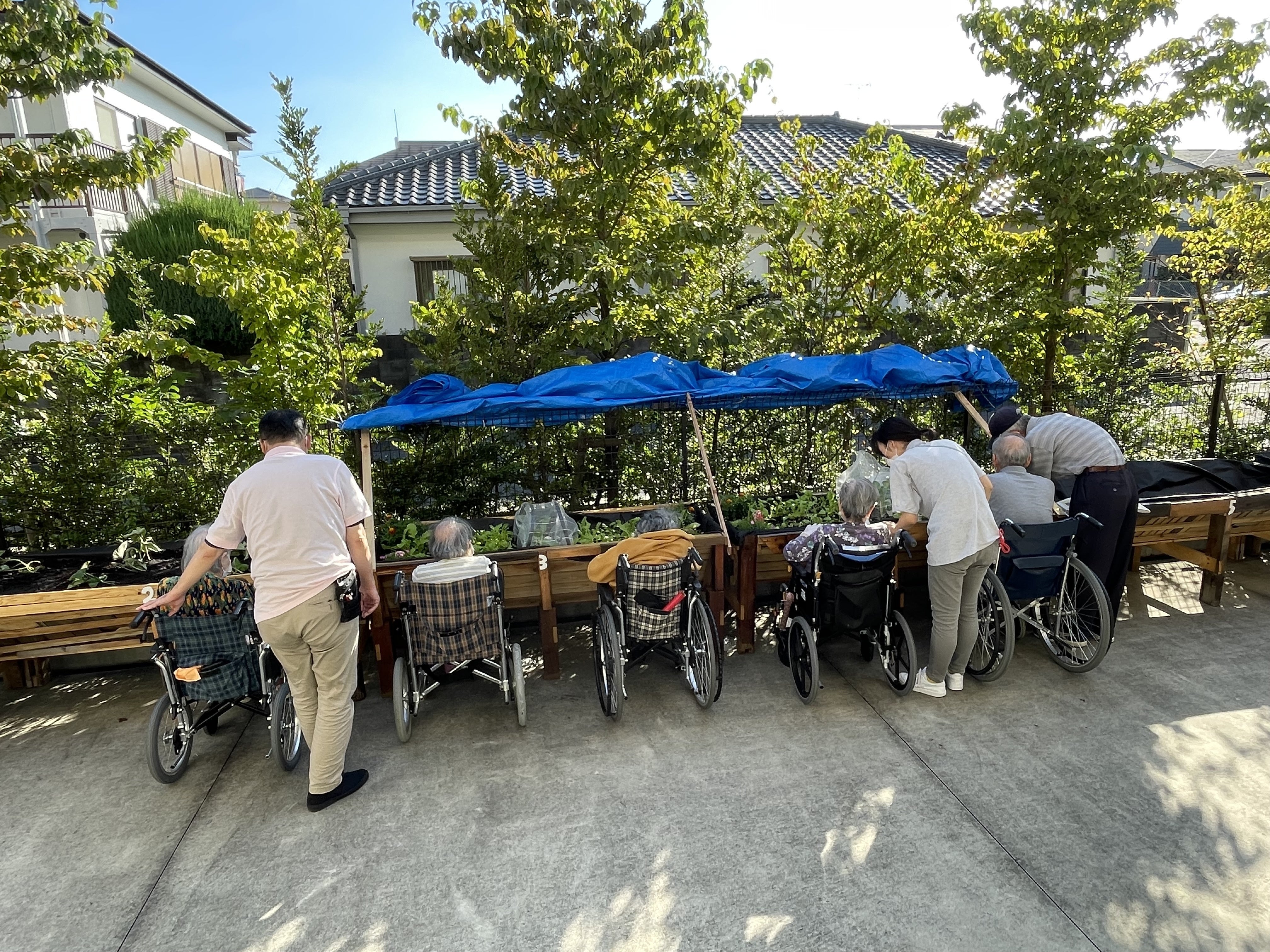 こんにちは。運営企画推進室の河原です。外は既に28℃を超えていますが、皆さまいかがお過ごしでしょうか。昨日は久しぶりの晴天に恵まれ、9名の入居者さんと一緒にサツマイモの植え付け作業を行いました。お忙しい中駆けつけてくださったのは、我らが師匠!クリーンむさしののTさんです。皆で手袋をつけて、プランターに並んで…2号基に並んだ8本の苗(倒れている訳ではありません!あえて斜めに植え付けています)サツマイモの植え付けがあっという間に終わってしまったので、続いて大根の間引き作業を行いました。「元気なのを残して…はい、抜けましたよ。間引き菜一丁!」「はい、まびきないっちょう!!」かけ声をあげながら、間引いた大根を皆でリレーします。陽の光を浴びながら、皆さんが気持ちよさそうにしている姿をみて、「これがやりたかった…!」と思わず胸が熱くなる瞬間でした。**********************************朝からあまり体調が優れなかった入居者のYさん。「そろそろ部屋に戻りますか?」と尋ねると、「戻らないよ」と首を振り最後まで参加されました。作業が終わってからも、久しぶりに再会できた入居者のKさんと二人、ふぁーむで静かに語り合っていらっしゃいました。各々が居心地よく過ごせる場所とらいふぁーむがそんな空間になっていくことを心から願っています。このイベントに入居者さんが参加できるよう、午前中からたくさんのユニット職員が協力をしてくれました。とらいふぁーむに関わるたくさんの方々の協力があって、今日もとらいふぁーむでは野菜たちがすくすくと育っています。皆さま、今日も良い一日をお過ごしください。とらいふ武蔵野河原 優子