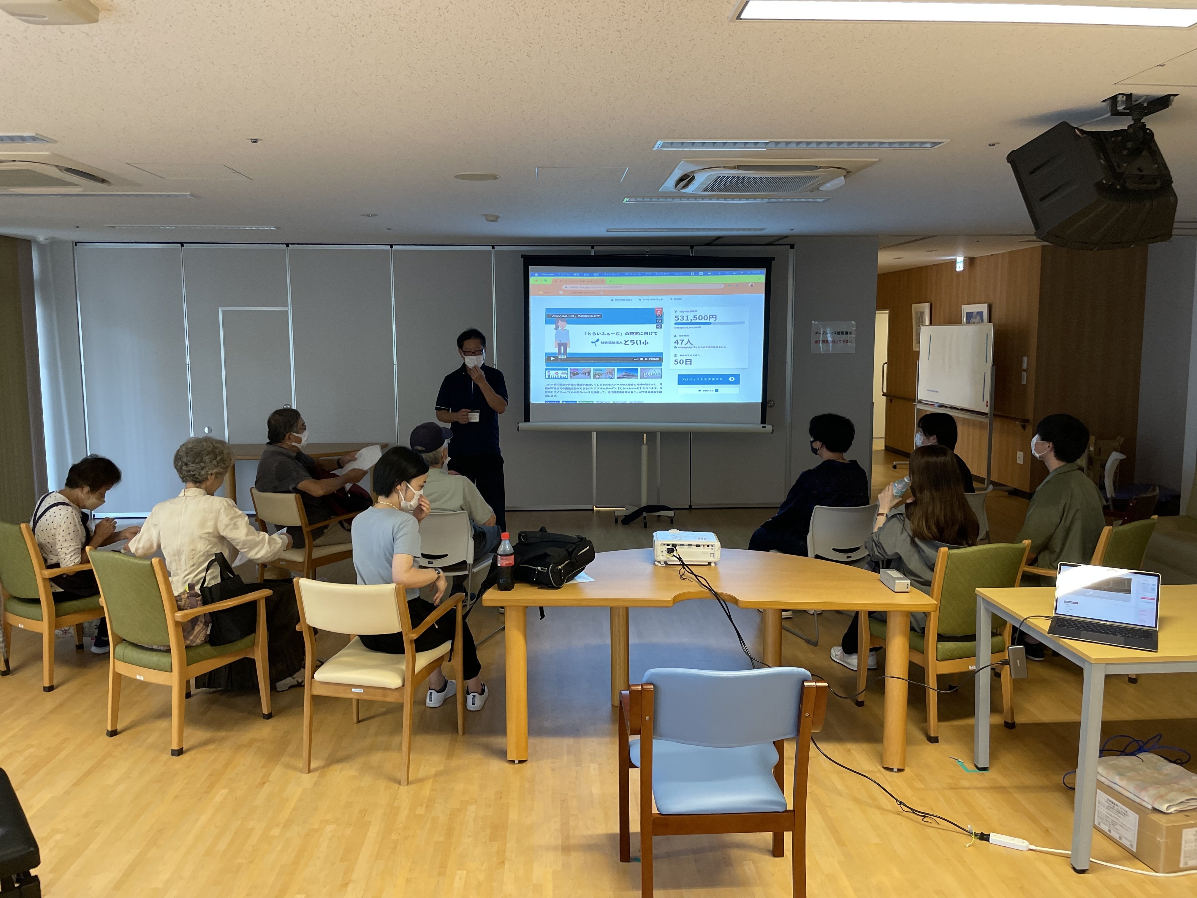 クラウドファンディングにご支援して頂いたみなさま、はじめまして。マルチーズのゆきです。ご支援いただきまことにありがとうございます。前回の報告犬モッタくんからバトンをもらって、今回は私が報告を担当します。普段は、デイサービスセンター「ぐっどういる境南」にいます。よろしくお願いします。ひとつめのご報告です。8月28日(日)現在のクラウドファンディング40人の方にご支援いただきました!2022年8月28日(日)現在とらいふ武蔵野の入口でも宣伝をはじめました。差入れなど持ってきて下さるご家族さまに応援していただけますように☆彡「そうだ、とらいふぁーむに行こう」カードを作って裏にはブログやクラウドファンディングが読み取れるようにしました。とらいふぁーむの目的をわかりやすくまとめて読めるようにしました。おかげさまで、ご家族様からのご支援が日々届いているそうです(⌒∇⌒)ふたつめの報告です。ボランティアさんが来てくれました!日曜日の午前10時過ぎ。人影が。「ひとりで大変だって聞いたんで・・・」近隣に住んでいるSさん(職員の遠い親戚だそうです)。毎週ひとりで作業している井口さんを助けに来てくれました。さっそく、角をのこぎりで落とす作業をお願いする井口さんすぐに始めてくださるSさんSさんがいるおかげで、井口さんは違う作業ができます「いつもの5倍速く作業が進んだよ」と井口さん。作業をしながら話がはずみます。Sさん。元は大学教員だったそうで、そのかたわら健康運動指導士として大企業の社員や地域の高齢者さまに対して市などからの依頼を受けて健康運動講座を指導していたそうです。とらいふぁーむのこれからについて話がはずみますSさんのおかげでふたつめに突入できました来週もSさんが午前中3時間だけ来てくれるそうです。また、新たに職員の娘さんもやすりがけに参加予定が決まりました!Sさん、ほんとうにありがとうございました。井口さんからのお知らせボランティア募集9月4日(日)10:00~12:00①やすりがけ②塗装○事前のご連絡は不要です。○工具、材料、手袋などは施設でご用意しております。○タオルやお飲み物等をご持参ください。今回のご報告は以上となります。みなさんのおかげで一歩一歩夢に近づいています。ありがとうございます。とらいふぁーむでお会いできる時を楽しみにしています!本物のゆきちゃんです(記事作成:佐藤)