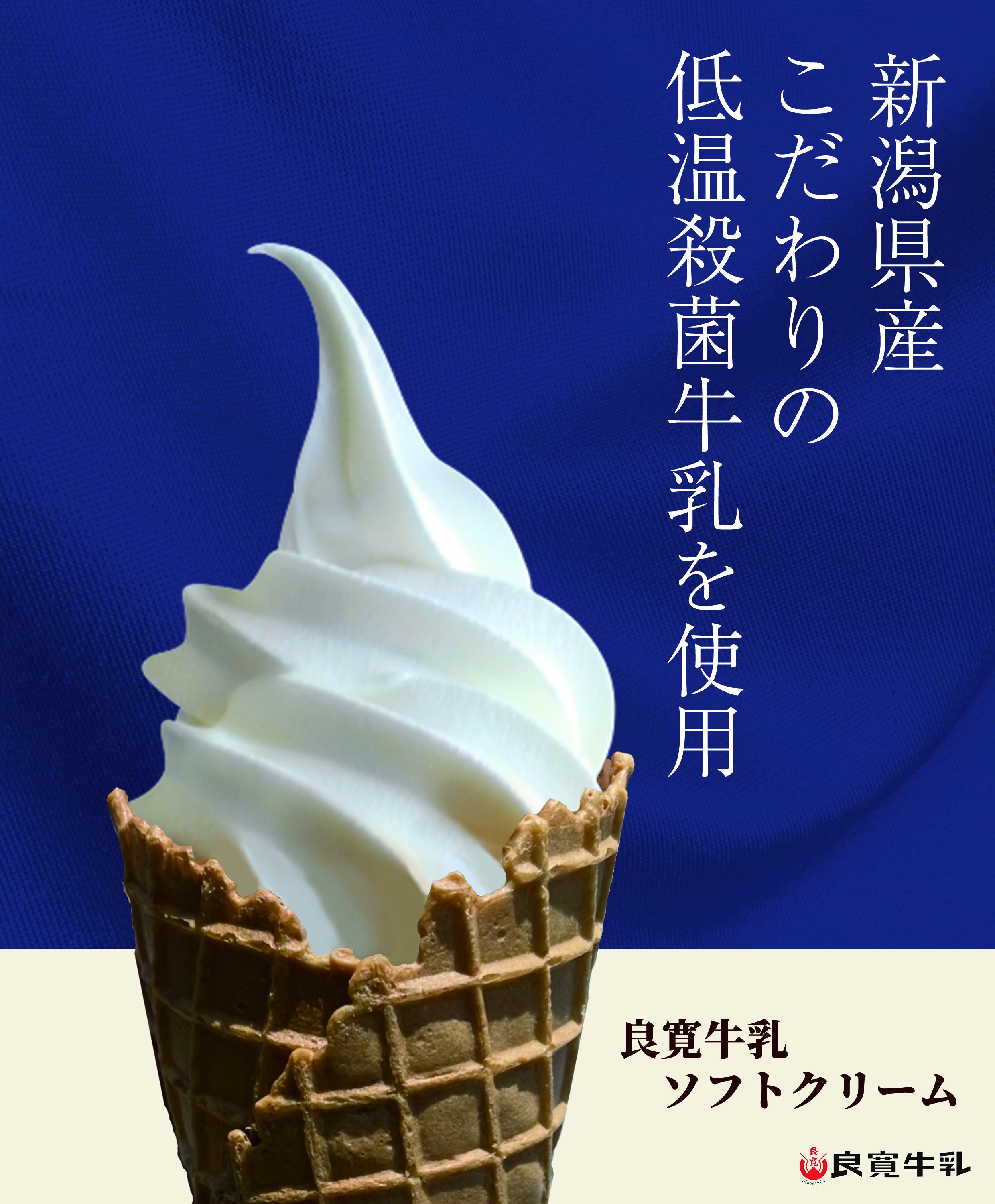 新しくオープンする良寛牛乳売店『新潟西店』でソフトクリームを発売したら、そちらでもご利用になれます。