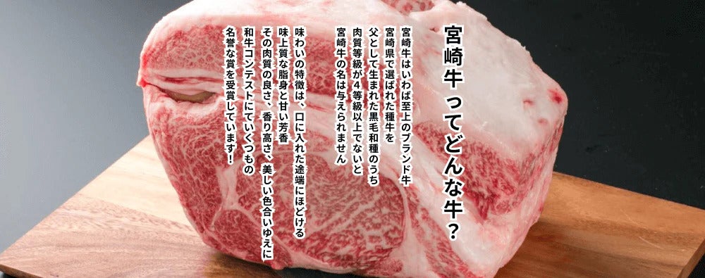 宮崎牛は、一言で言えば「味に品格がある」お肉。全国から優秀な和牛が集まり、その優劣性を競う「全国和牛能力共進会(和牛オリンピック)」で史上初の3大会連続受賞を果たした、「日本一のブランド和牛」の異名を持つ和牛です。その香り高さ、肉質の良さは食べた人に驚きをもたらします。