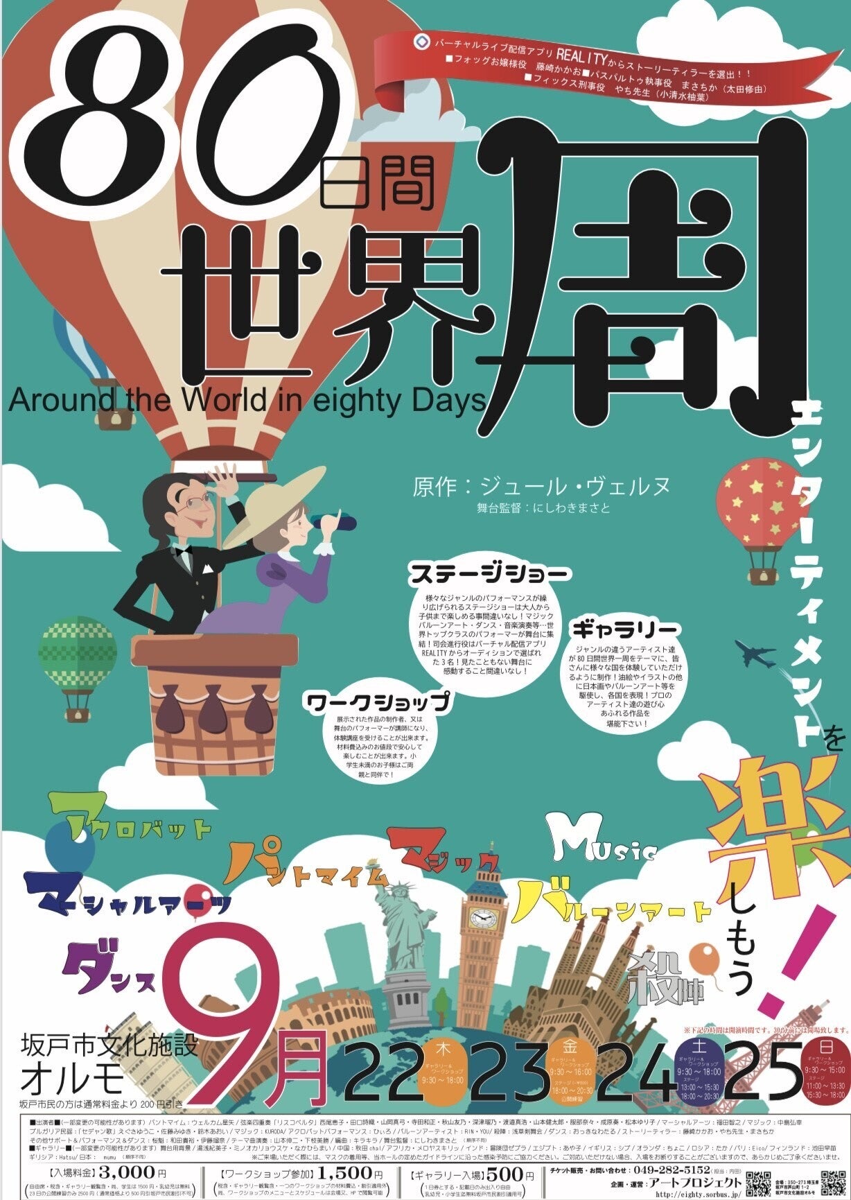 油絵やイラストの他に似顔絵やバルーンアート等を使って、80日間世界一周 の世界を表現。 これ程多種に渡るジャンルが集まるのはここだけ!!