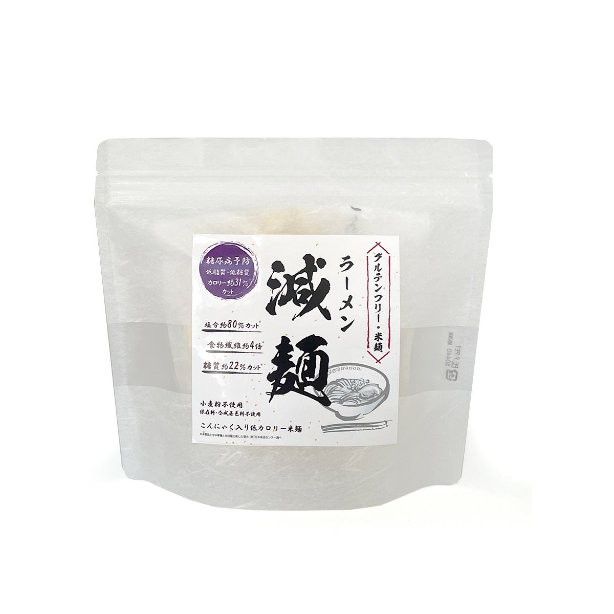 新たに開発したグルテンフリーのラーメン「減麺」のセットをご用意しました。