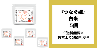 2022/08/25 12:09皆様のおかげで、こんなにも早く100%を達成することができました!誠にありがとうございます!この度、ご支援いただいた方々からの多くの声もあり、100%達成を記念して、リターン品を追加させていただきます!【9/1は防災の日】その商品はアルファ機能米『つなぐ姫』です!●こんな方におすすめ・糖質、カロリーをカットしながら、即席で食べたい!・最近地震や大雨などの災害が多いので、非常食として、災害備蓄したい!・流行りのキャンプ飯で、カロリーを気にせず食べたい!●商品特徴・糖質、カロリー34%カット・食物繊維約8倍・カルシウム約4倍でありながら、【お湯でたった15分】【水で60分】注いで待つだけで食べることができます!①電子レンジ不要!②手軽に健康管理!糖質・カロリー34%カット③お湯で15分・水で60分 簡単調理!④非常食の備蓄に!⑤食物繊維 約8倍・カルシウム約4倍!●商品詳細つなぐ姫とは:うるち米にこんにゃく米を配合し、一度炊き上げ急速乾燥させたパック商品です。アレルギー特定原材料 28品目不使用:乳幼児や妊婦さんにも安心してお召し上がり頂けます。また介護食にも対応しています。水分調整で雑炊にも:つなぐ姫は水分量の調整で、雑炊としてもお召し上がり頂けます。袋内側の注水線を目印にして、お好みの柔らかさに調理していただくことで 高齢者や災害時にも安心してお召し上がり頂けます。糖質制限に対応:こんにゃく米配合の低糖質商品の為、糖尿病や糖質制限中の方にもお召し上がり頂けます。また 食物繊維、カルシウムが豊富で健康管理にも活用頂けます。※当製品は、あくまでも糖尿病や成人病の予防、ダイエットのサポートをする製品です。病気の治療を目的とした製品ではありません。 ●お召し上がり方お湯で15分、お水で60分。 注いで待つだけ!簡単に調理できます。 防災備蓄、レジャー用として手軽に活用いただけます。ぜひたくさんの方に、お試しいただけたらと思います!引き続き、よろしくお願い致します! もっと見る