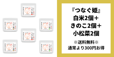 ⑤つなぐ姫(白米)×2、つなぐ姫(きのこ)×2 、つなぐ姫(小松菜)×2