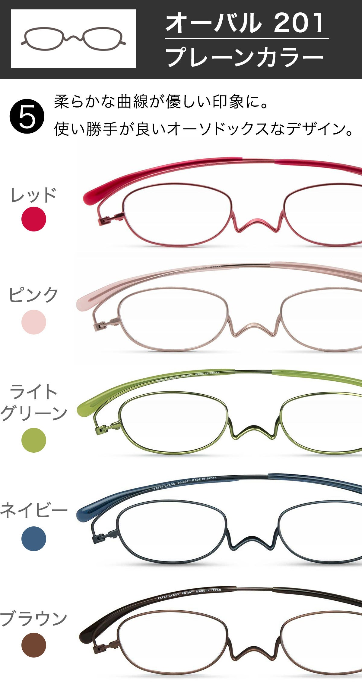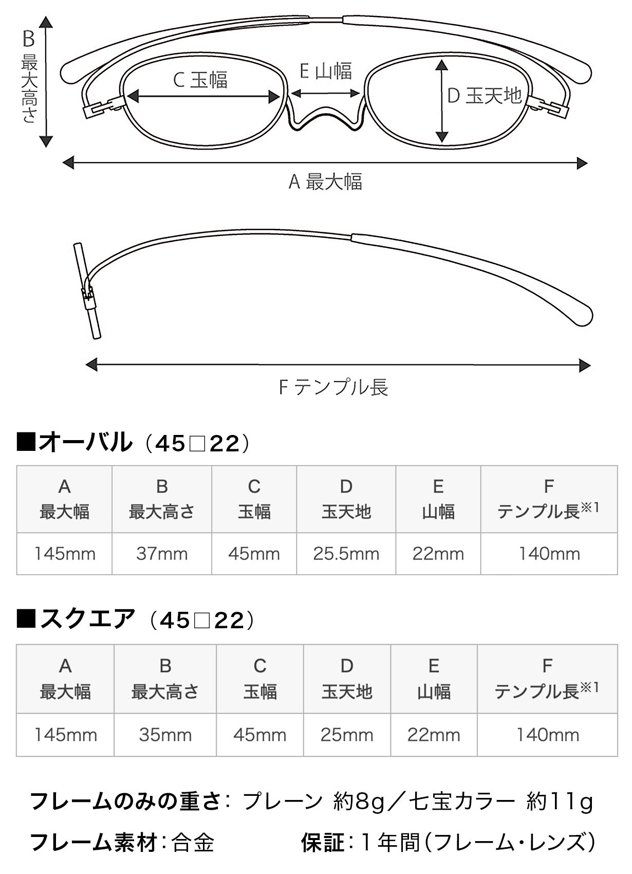 選べるフレームの形はオーバル・スクエアの全2型。