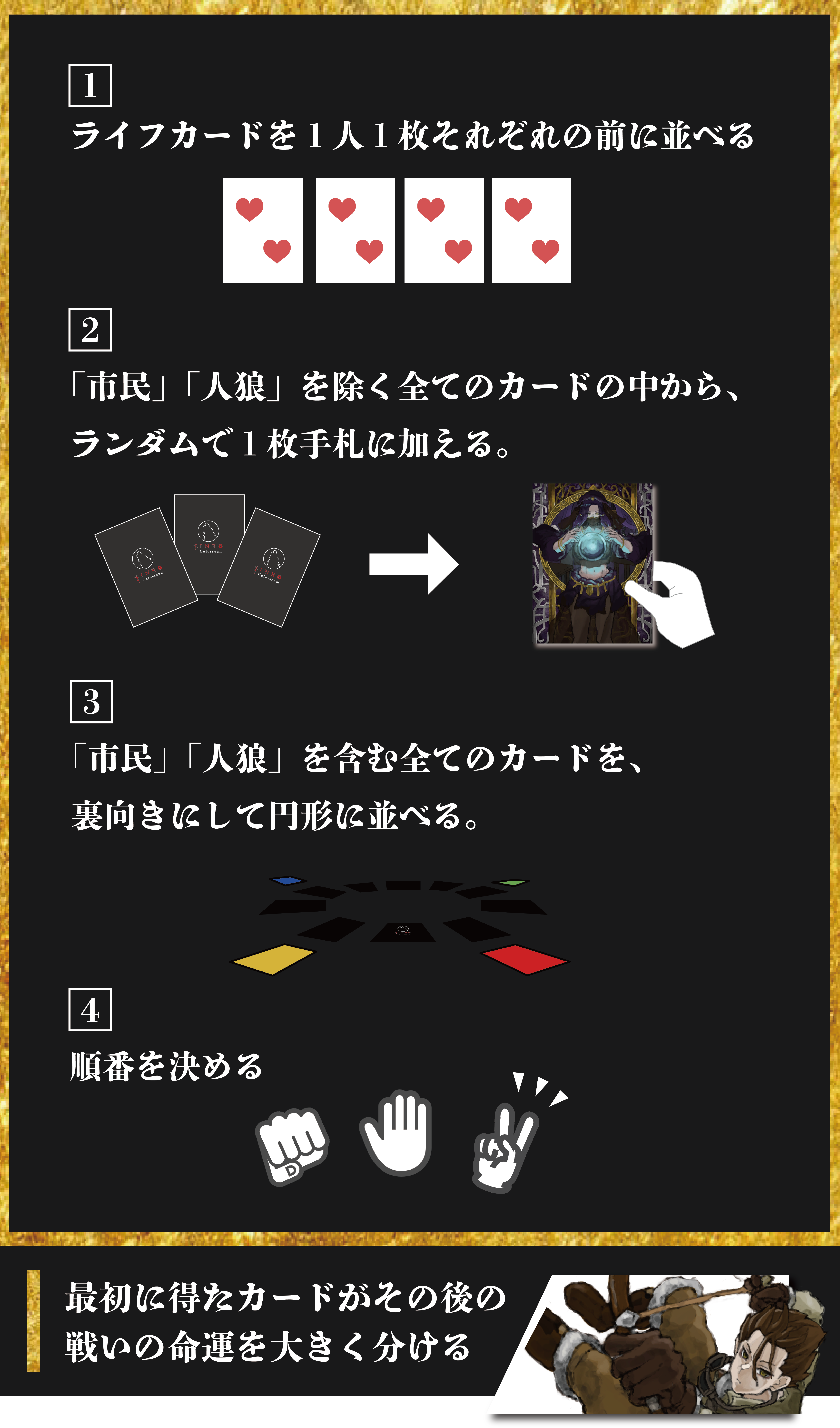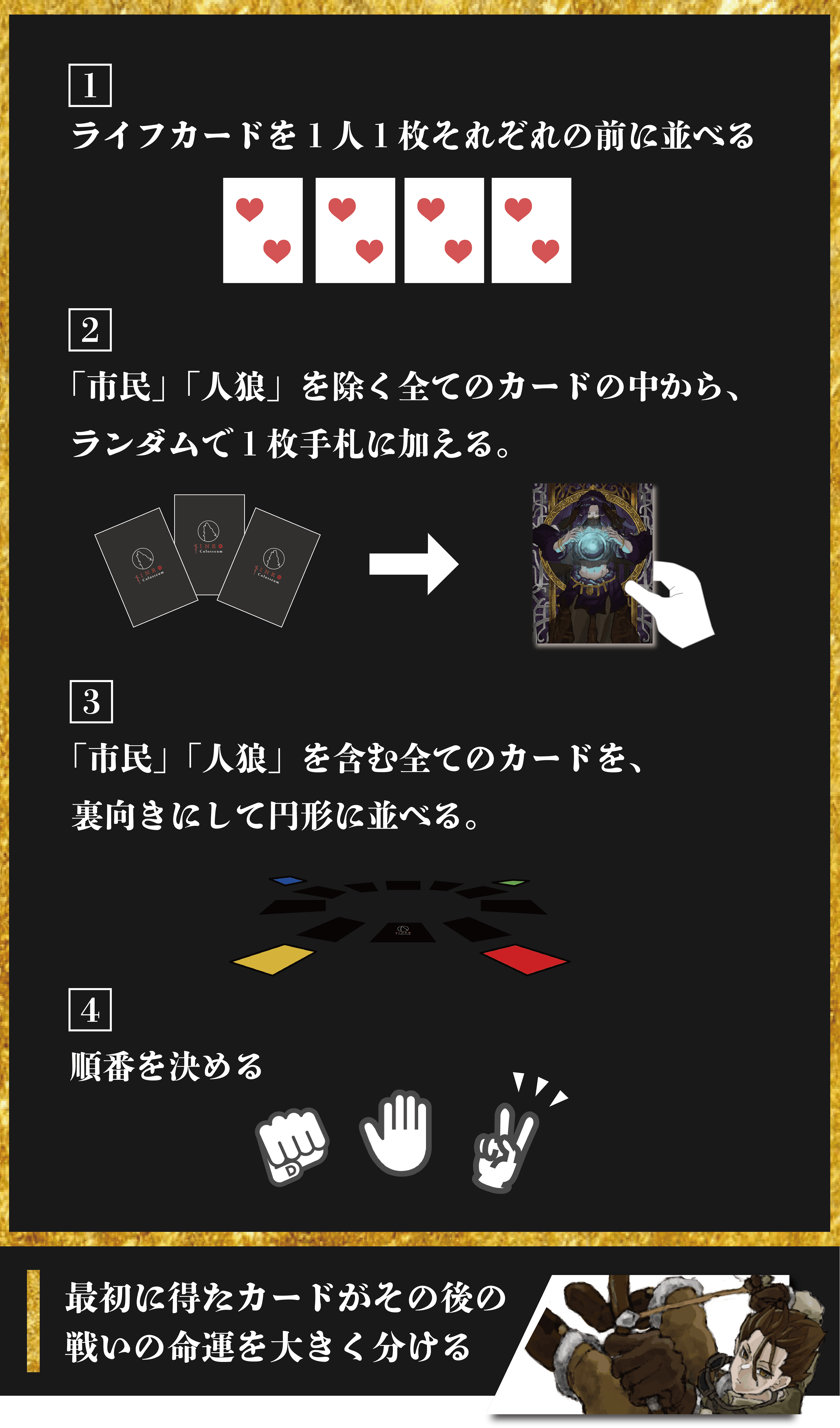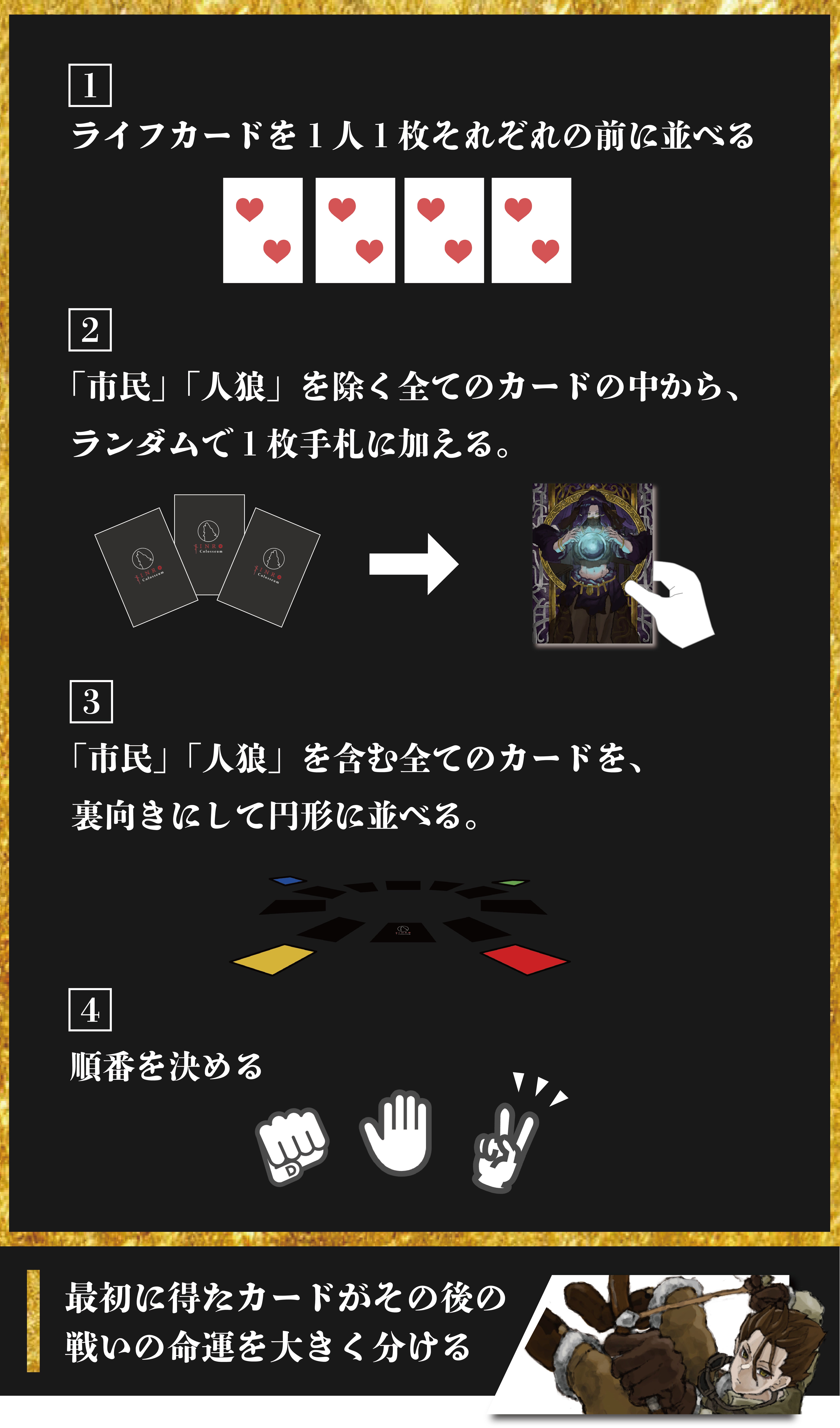 「ゲームの準備」「ゲームの進行」「ゲームの終了」の3つのステップに分かれます。