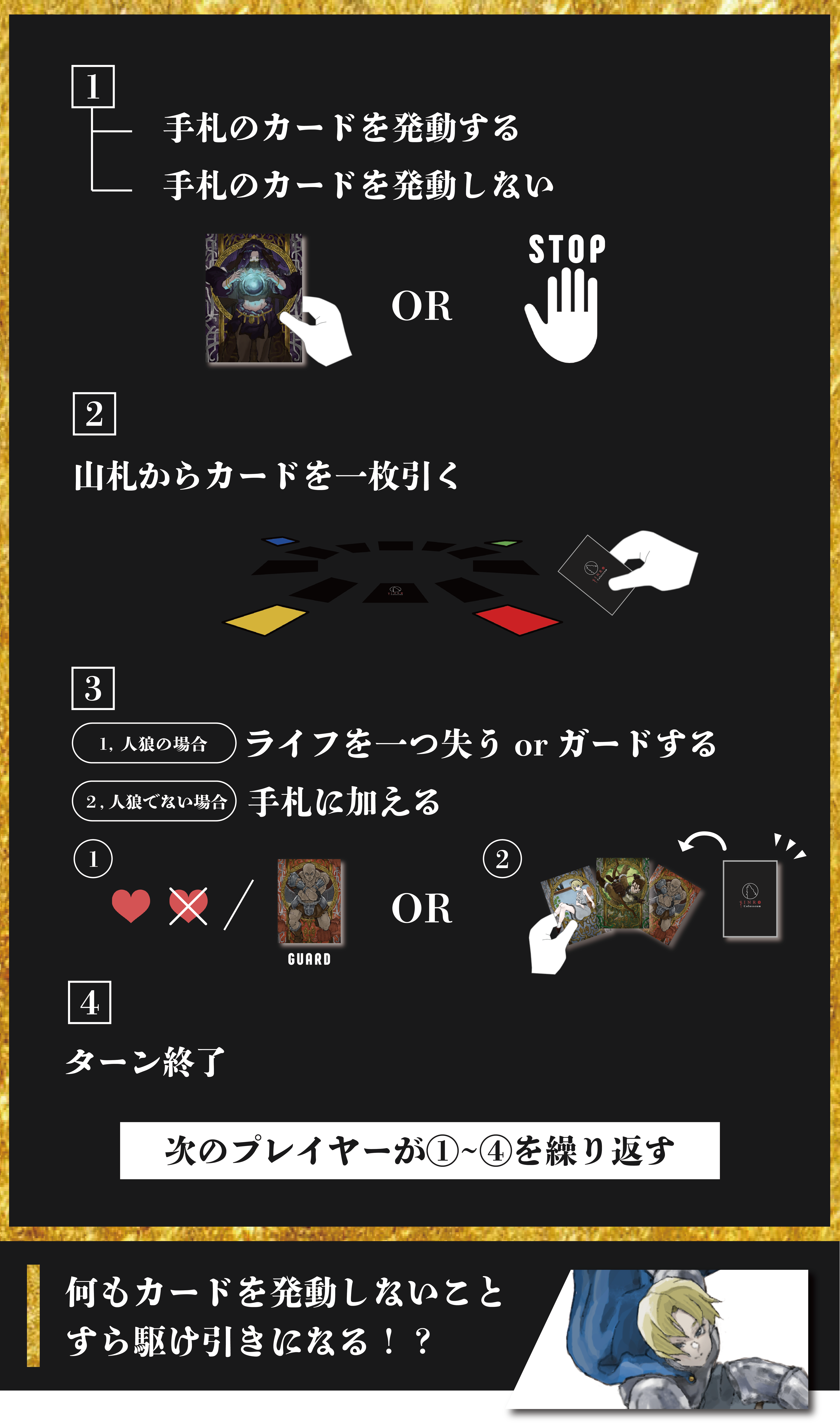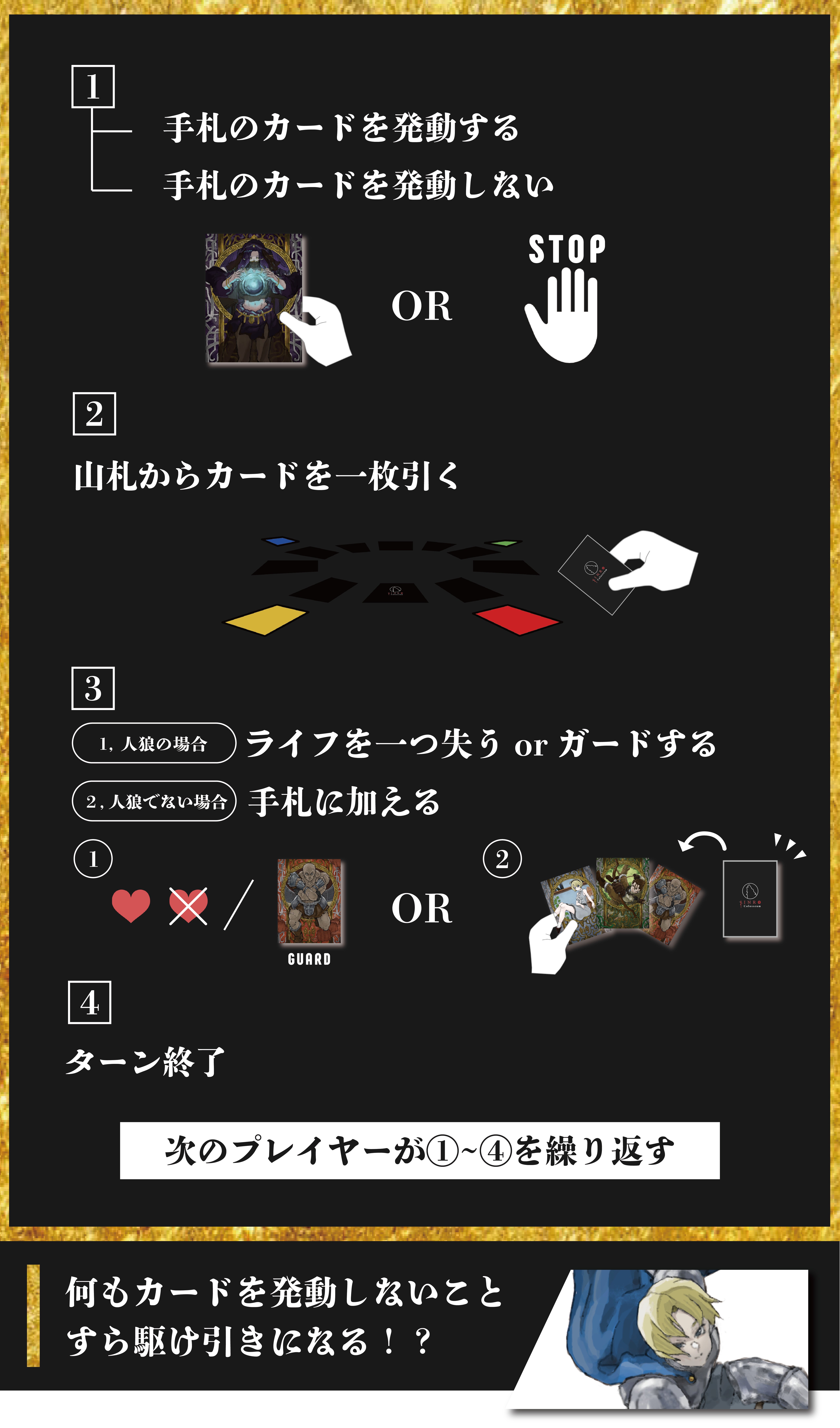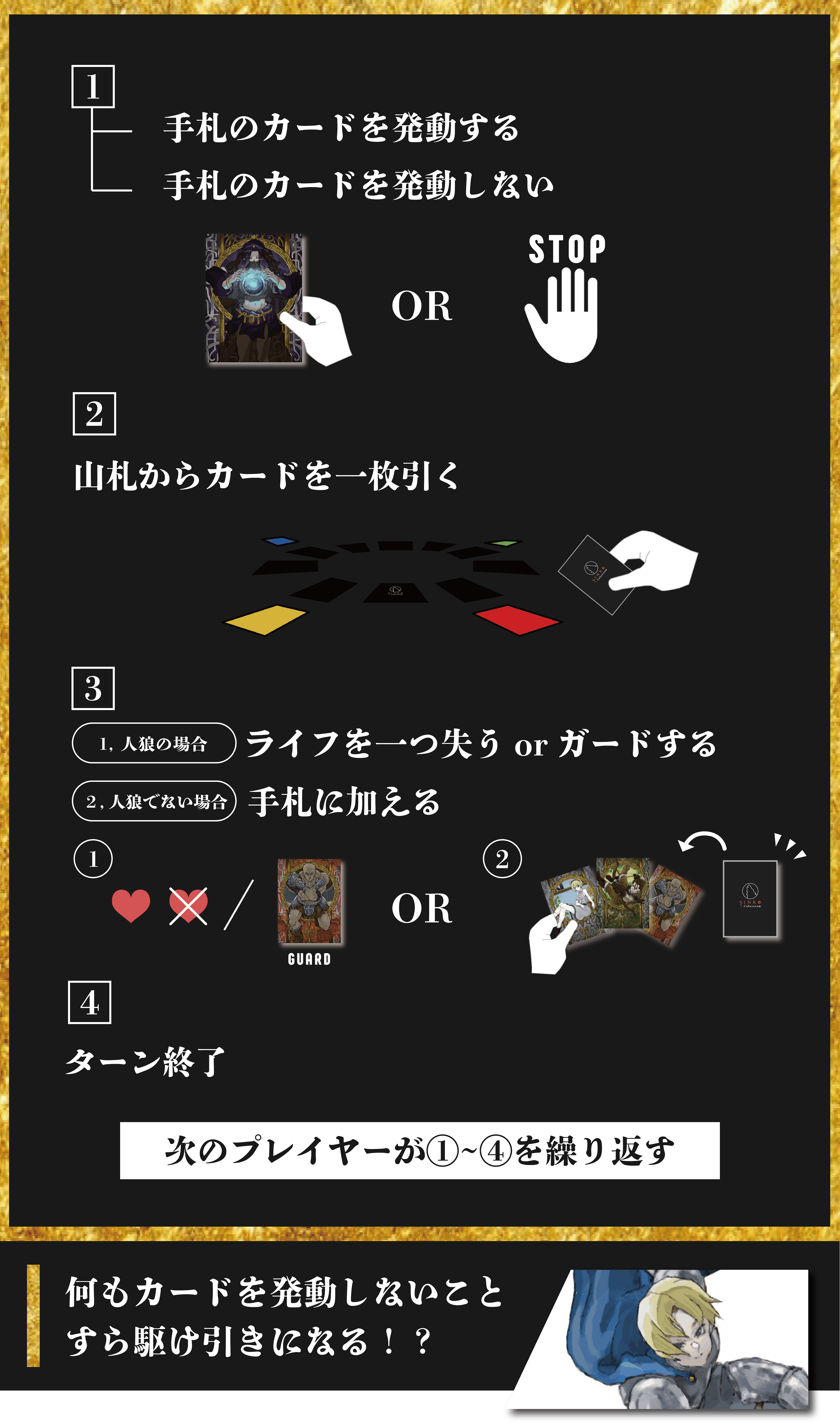 「ゲームの準備」「ゲームの進行」「ゲームの終了」の3つのステップに分かれます。